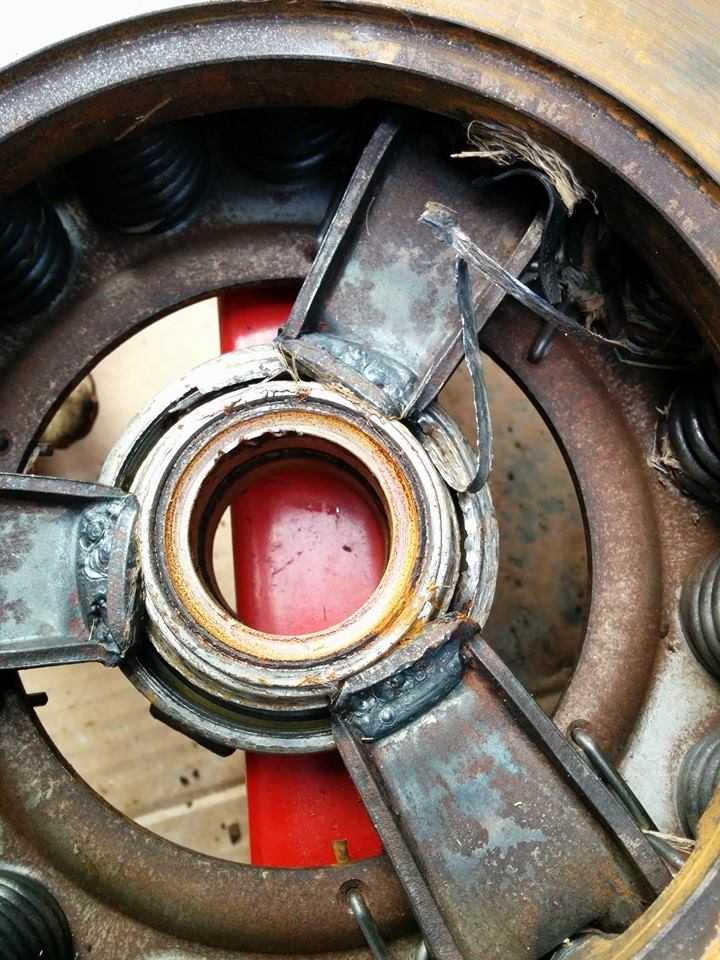 Kytkimen vikakin selvis. Asetelman käpälätkin näköjään joku hitsannut :rolleyes: Kytkinhaarukan osatkin löyty asetelman sisältä, pitäis vaan siihen kuulaan rakentaa joku kiinnike tai ostaa uus haarukka.