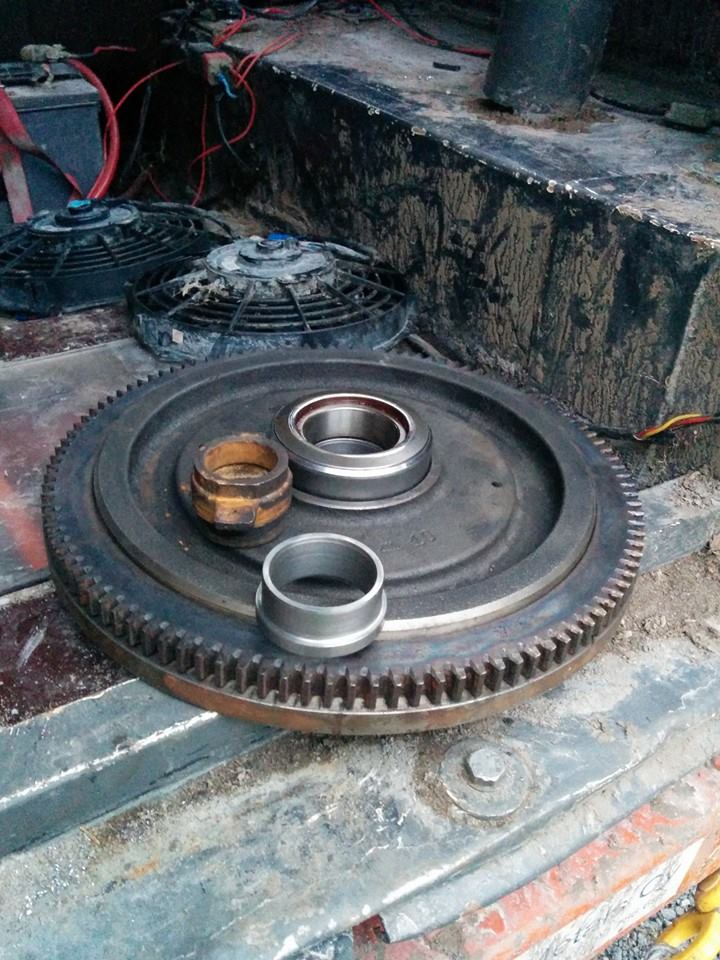 Palikat saatu takasin mutta BJ:n hammaskejä ei ottanut tarpeeksi piukkaan tohon HJ:n vauhtipyörään, eli pääsee pyörimään . Pitäis vielä keksiä mikä olisi järkevin tapa kiinnittää se :confused: