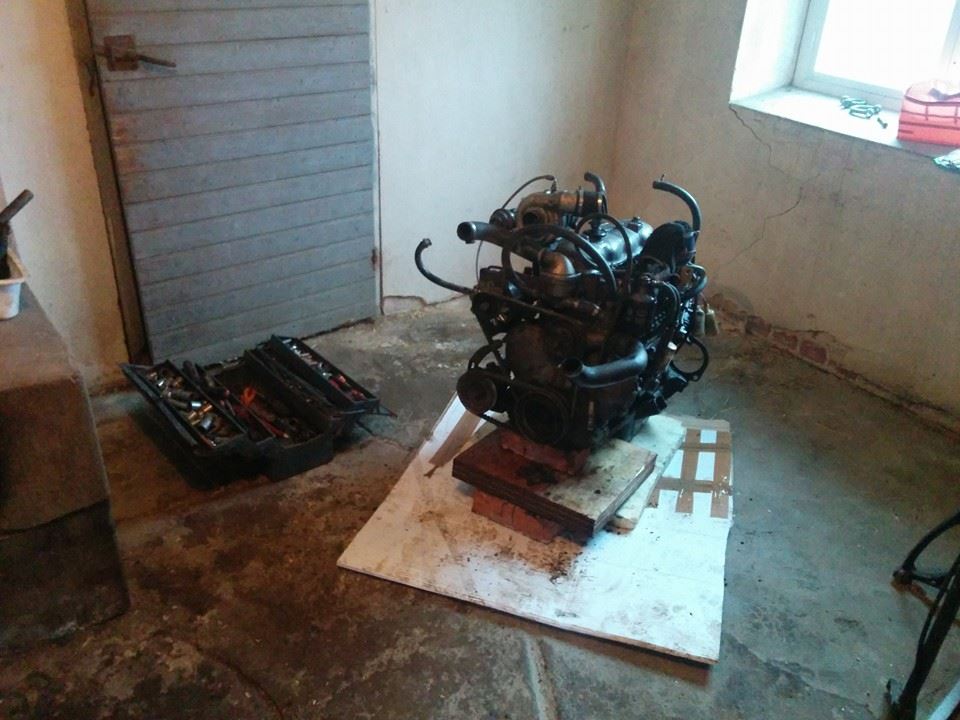 Tänään sain siirreltyä moottorin sisätiloihin ja alotettua purkamista ja ihan hyväkin että tulee nyt katsottua toi moottori läpi. Tehostajan pumppu oli kiinni oikeestaan yhdellä pultilla, vesipumppu oli aivan loppu, löpösuodattimen jalan letkut oli sormikireydellä jne.. :cool: