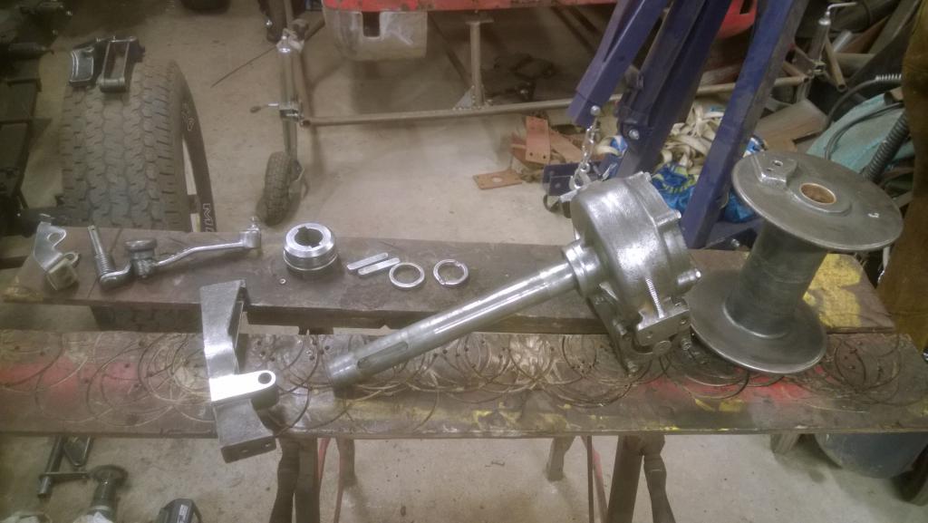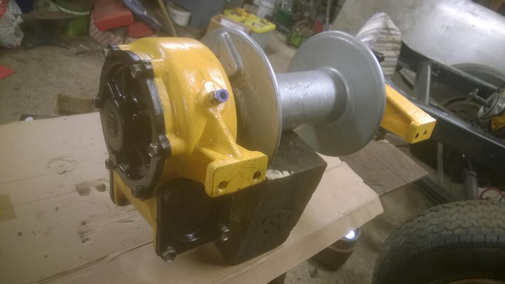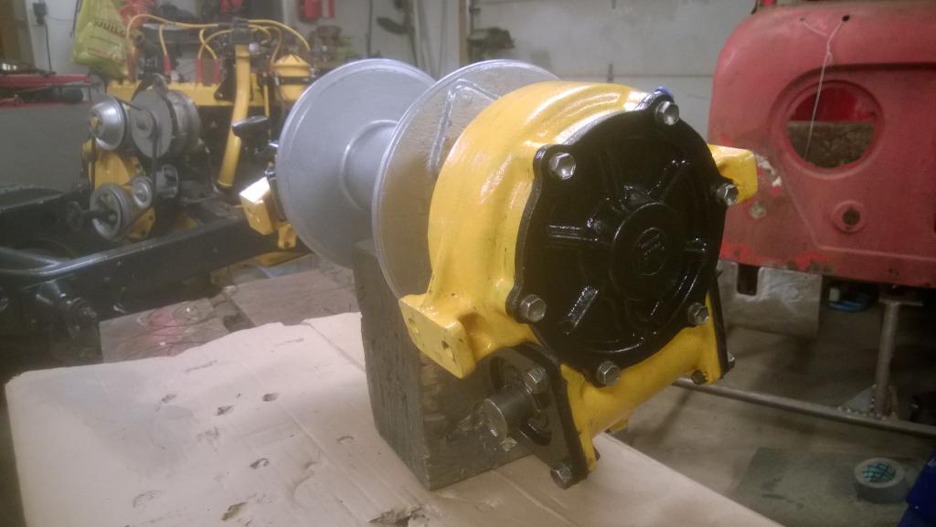 Sivujuonteena, pitäs löytää tai sorvauttaa tuohon vinssin sisäänmenoakselille kardaania varten kiinnityslaippa, ristikkonivel tai vastaava, näytti