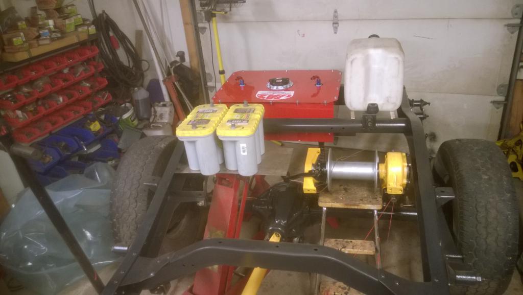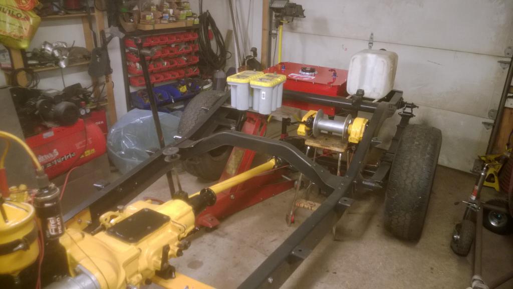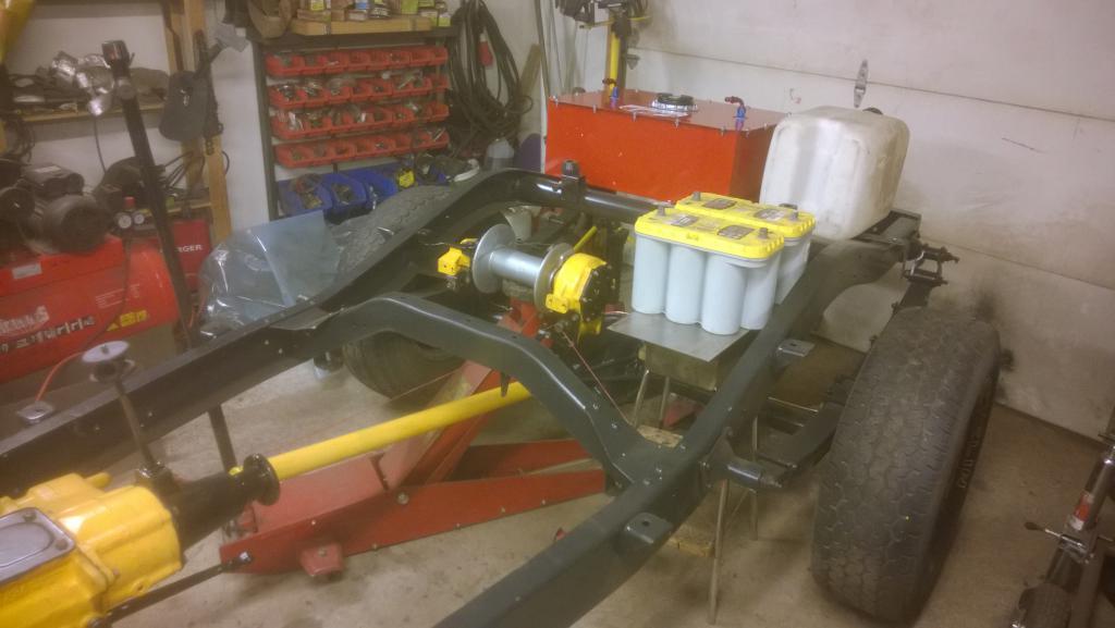 onko vinssi apparin vai kuskin puolella (en nyt keksi mitään merkitystä onko kumman puolella?) ja onko bensatankki runkopalkkien välissä vai ei (minimi vaikutus painopisteeseen?) joten voi olla että päädyn sijottelemaan kamat kakkos vaihtoehdon mukaan. |