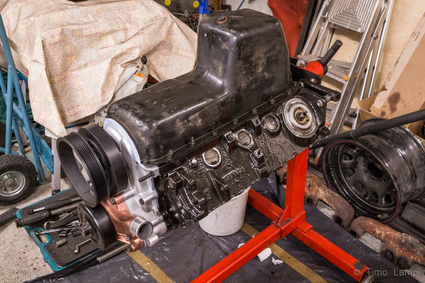* Runkolaakerit tarkistettu (laakeripukkien puoliskot) * Kampuran etu- ja takastefa vaihdettu * Uusi öljypumppu vaihdettu * Uusi nokka-akseli asennettu * Uusi ajoitusketju & rattaat asennettu, dampperi/ hihnapyörä paikalleen * Ajoitusketjun koppa & uusi vesipumppu asennettu * Öljypohja paikalleen * Kone siistitty & maalattu ..ja muuta pientä sekalaista. Runkolaakerit oli ihan ok; kolmoslaakerissa tuntui keskellä liuskaa hiuksenhieno ura, muut oli sileät. Öljynpaineet on olleet täydelliset kaikissa mahdollisissa tilanteissa, joten en näe mitään järkevää syytä vaihtaa näitä. Olisihan tässä nyt ollut helppo tehdä vaikka mitä, mutta aika eikä rahat riitä enempään :D http://timolampi.kuvat.fi/kuvat/Offr....jpg/_full.jpg Ennen: http://timolampi.kuvat.fi/kuvat/Offr....jpg/_full.jpg ..jälkeen: http://timolampi.kuvat.fi/kuvat/Offr....jpg/_full.jpg Lohko ennen siistimistä: http://timolampi.kuvat.fi/kuvat/Offr....jpg/_full.jpg ..ja sen jälkeen - samalla testisovitin apulaitekehikkoa latureineen. Hyvä siitä tulee :cool: http://timolampi.kuvat.fi/kuvat/Offr....jpg/_full.jpg http://timolampi.kuvat.fi/kuvat/Offr....jpg/_full.jpg |