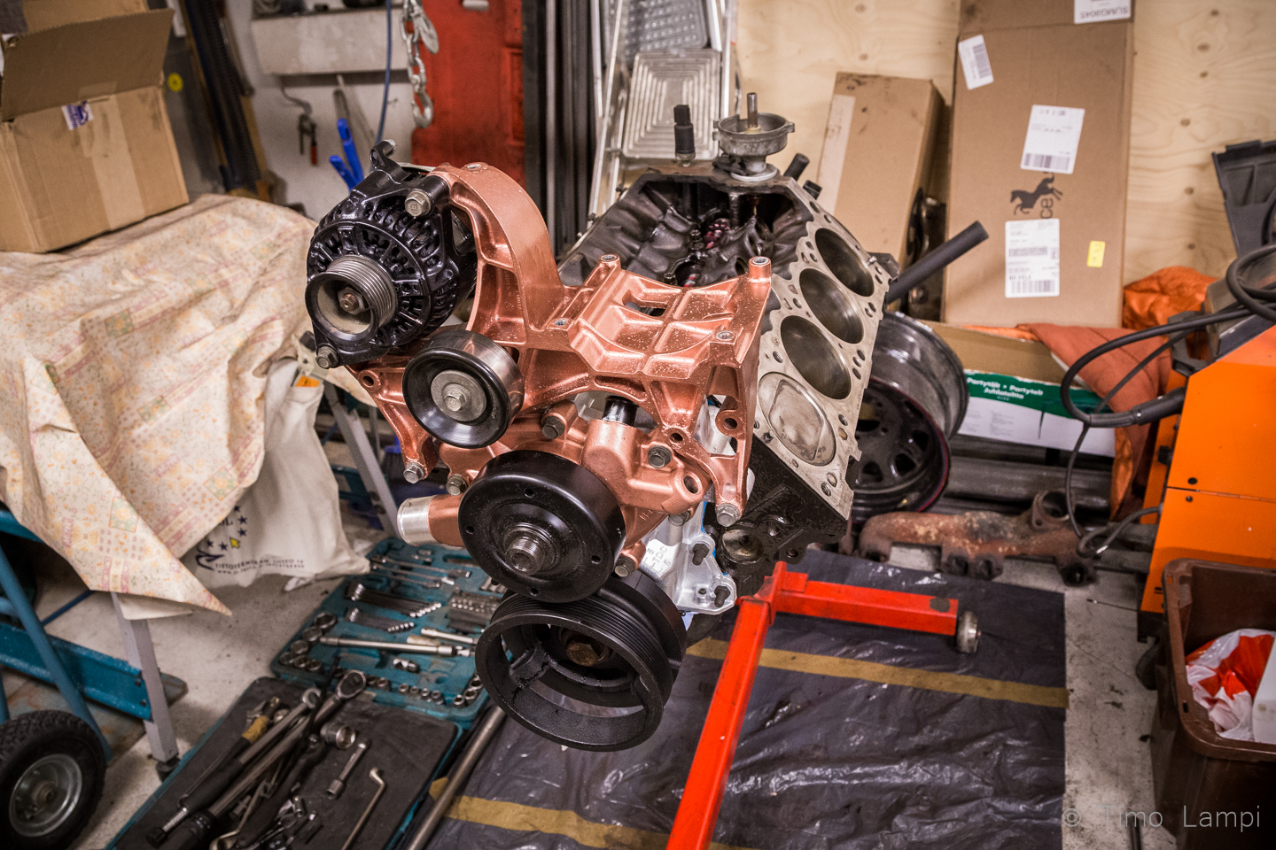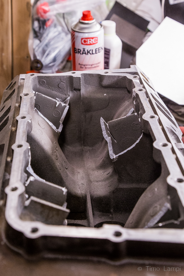 Tuo imusarja ja apulaitehäkkyrä oli vain testinä, ei asennettuna. Ei siinä ollut yhtäkään pulttia kiinni, tai edes tiivisteitä eikä pohjalevyä paikallaan :D |