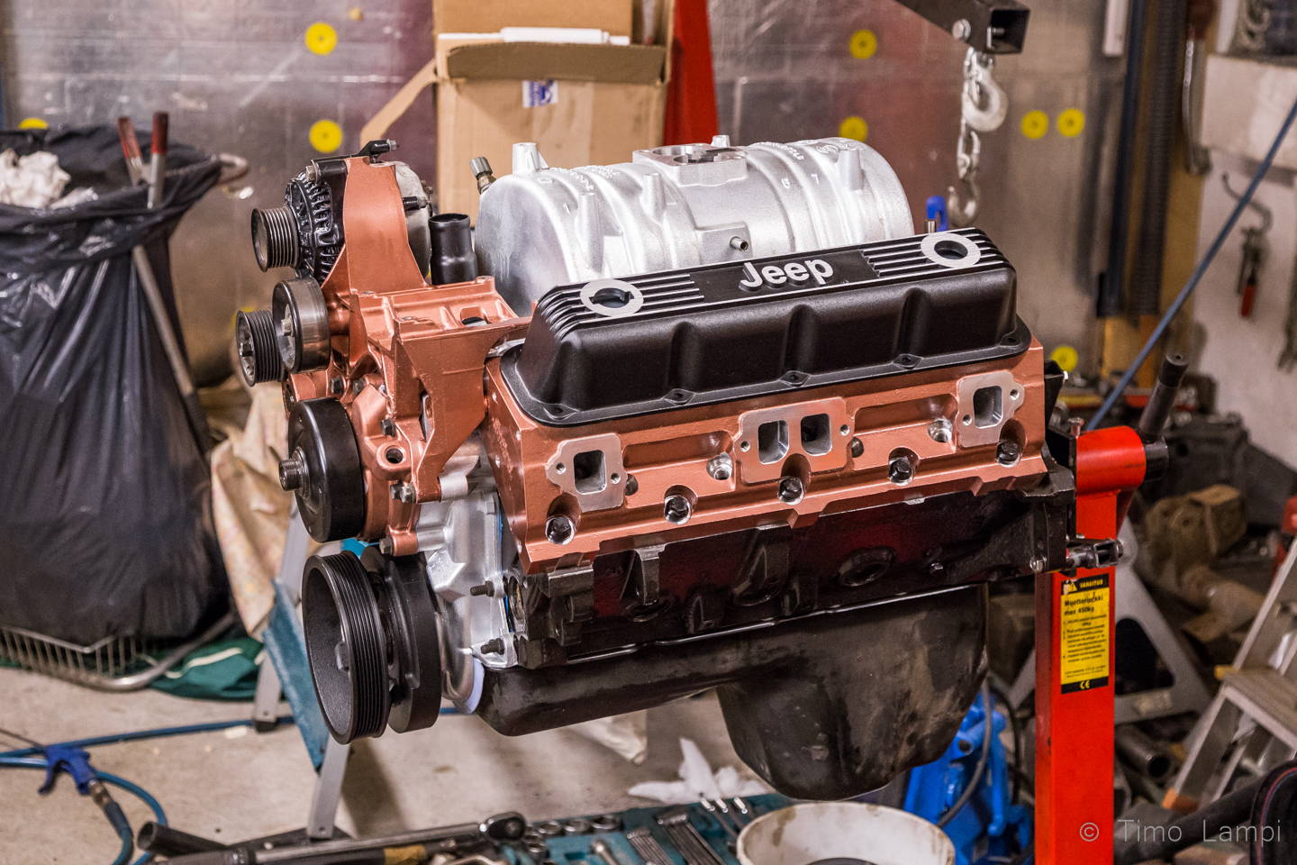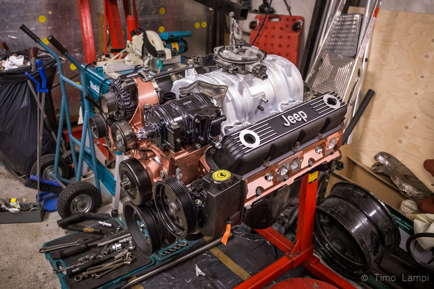 Mörinät kuulu sisään asti kun kurvasit 4x4 Partsin pihalle perjantaina ja nättihän se kone on maalattuna kun kurkattiin konehuoneeseen, vaan ensimmäisen mutahaudan jälkeen taitaa maalit olla peitossa? ;)