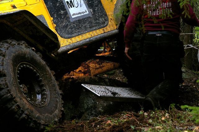 Sijotus ei ollut kummoinen. Pitäisiköhän ilmoittautua proto luokkaan. Siellä sijoitus olisi ollut paljon parempi. Pieniä ongelmia oli. Jeeppi jäi vahaamatta, kun aineet jäi kotiin. Sitten muistitikkua ei meinannut löytyä ennen lähtöä. Saatiin sitten lainaksi jonkun oma tikku, jossa oli rastit. Kopion rastit ja kone sekosi totaalisesti. Tiedostojärjestelmä hajosi. Kiireellä hakemaan varaläppäriä. Minuuttia ennen lähtöä saatiin varakone toimimaan. Kisan viimeisellä tunnilla sitten toinen oksavaieri irtosi. Muita ongelmia ei kisan aikana ollut. Vetoautona oli uusi Grand Cherokee. Nyt väri oli uuden apparin mieleinen. |
