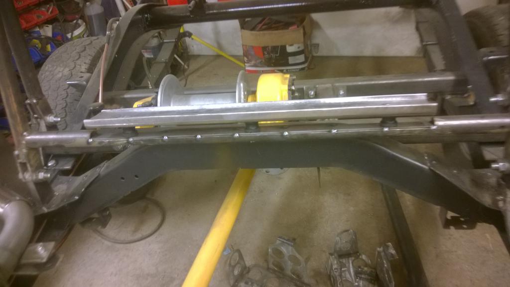 Tänään sain vihdoin pultattua takas paikoilleen nuo maalatut osat eli vinssin kardaanin, vinssin pedin ja akkukotelot.