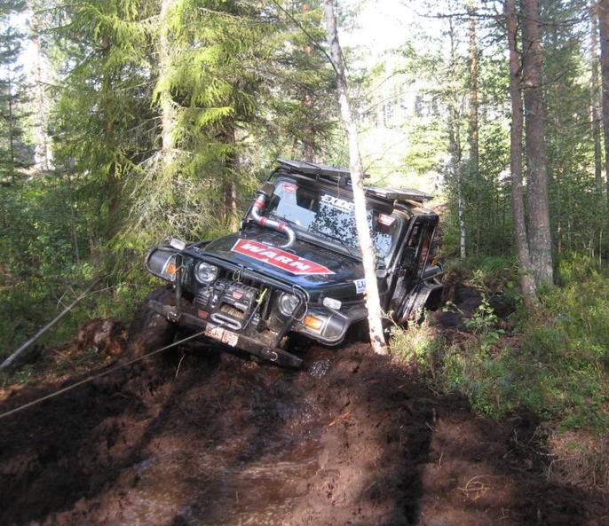 Kyllä sen huomasi että porukka on ajanut offia ennenkin, sen verran vauhdikasta meno oli ajoalueilla. Auton keskeneräisyys oli (ehkä) suurin syy rastipisteiden vähäisyyteen. Vakiot välitykset ja suuremmat renkaat takasivat itämäisen palaneen kamelinkarvan hajun kopissa, pari kertaa kytkimestä katosi pito kokonaan... Vesiallergia oli voimakas, voimakasta käymättömyyttä havaittiin heti kun auton nenä kastui. Pesupaikaltakin piti poistua starttimoottorin avulla. Etu ja takalukkoja ei vielä oikein kaivannut mutta se on välittömästi esissä kun tämän välityspuolen saa kuntoon. Ajosillat puuttuivat katolta ja siten piti ojanylitykset unohtaa ihan suosiolla mahdollisen kosteusongelman takia, eikä sieltä kiinan kautta vinssillä vetäen ole mitään mieltä tällä pikkupyöräisellä. Pohjan suojaukseen tulee pientä säätöä mutta siinä kohdassa olemme sentään oikeilla jäljillä. Mutta aikuisten oikeesti oli kyllä mahtava reissu, harmittaa kun en ollut aijemmin rohjennut lähteä näihin kisoihin ajamaan, ainakin Juuassa oli muutakin kuin verenmaku suussa ajamista. Ja haatetta riitti kun itseäkin välillä pelotti. Nyt on auton suorituskykyä testattu ja todettu että kyllä sen saa ajaa aika pirun kallelleen eikä se (vielä) kaadu... Loppuun ISOT onnittelut Haukun tiimille ja kuten luvattua mikkelissä seuraavan kerran... Terkut sille sairaan nopeelle keltaiselle suzukiporukalle mitkä nauraa varmaan vieläkin partaansa. Seuraavalla kerralla en päästä... |