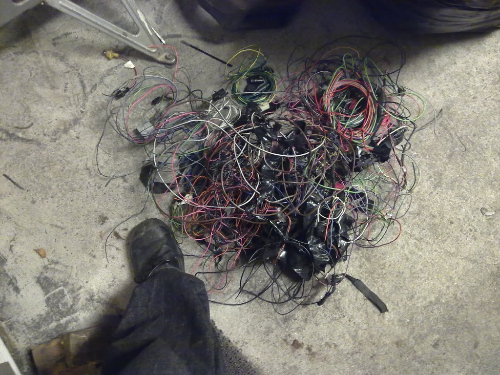 Piti irrottaa kojelauta, että sain selviteltyä tuota johtospagettia auton sisällä vähän parempaan uskoon. Johtonipuissa oli aikamoinen määrä turhaa johtoa, ja kun tuo kojelauta lähti niin tulee varmaan samalla tehtyä uusi kojelauta, joten aika kasa turhia kytkimiä, nappuloita ja valoja jää kytkemättä mitä aiemmin vielä oli.