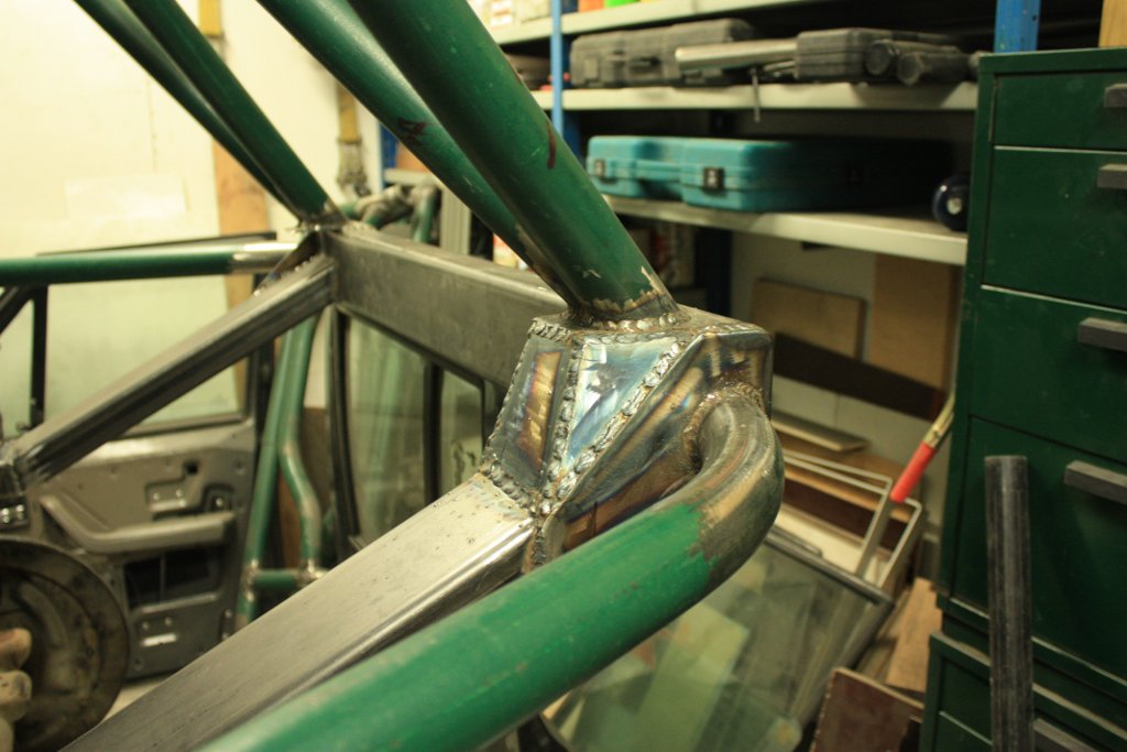 Tuli taas pari putkea lisäiltyä; poikkiputki a- pilarien väliin, joka tuetaan sitten sopivalla ohkasella levyllä tulipeltiin ja tuulilasin alapuolelle.
