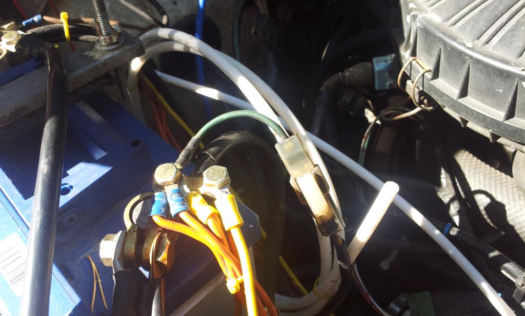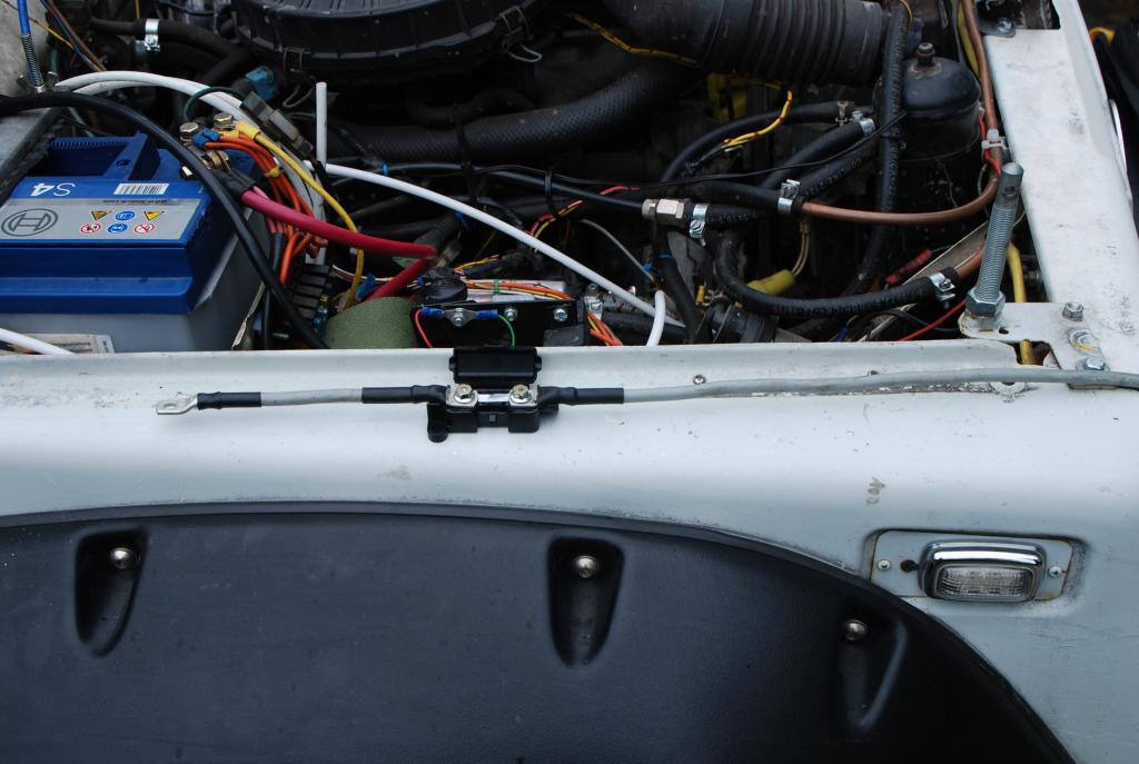 Alkuperäinen fusible linkki sai väistyä 100A sulakkeen ja sopivan paksuisen kaapelin tieltä. Nopea homma laittaa paikalleen, kun säätäjä_setä oli etukäteen valmistellut vaihto osan:)