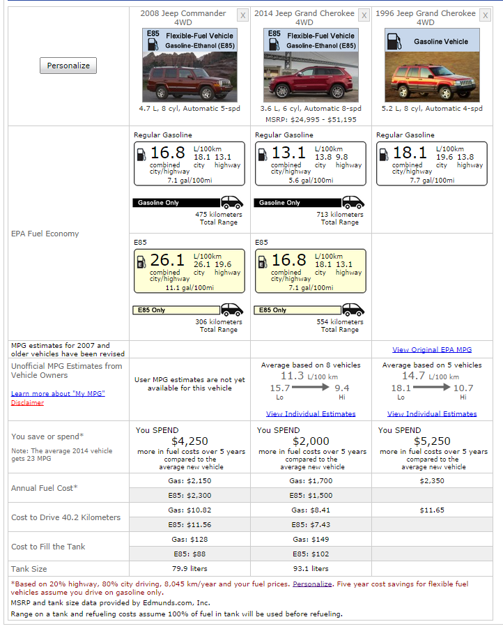 Sen verran kokeilin etanolia, että ajelin marraskuussa Rovaniemelle WJ V8:lla, niin lähtiessä oli tankissa about 60l ysivitosta ja 30l etanolia. Toimi ihan normaalisti, ja kulutus oli Oulun korvilla jotain 12.4l/100km, kun tankkasin taas bensaa. Rovaniemelle tullessa kulutus tipahti tasan kahteentoista litraan, että ei vielä tuo etanolipitoisuus vaikuttanut juuri kulutukseenkaan.