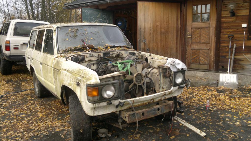 Joo tän auton tarinahan on ollut olla varaosa-autona yhdelle siniselle bj:lle, eli oli ex omistaja käyttänyt/korjannut parhaat osat omaansa ja kaikki paska tuli sit tän mukana...silloisesta koneesta mm. 1 kiertarin pultit oli lainattu.