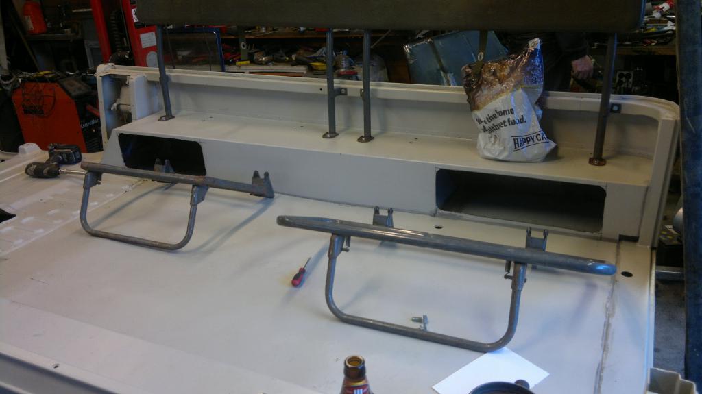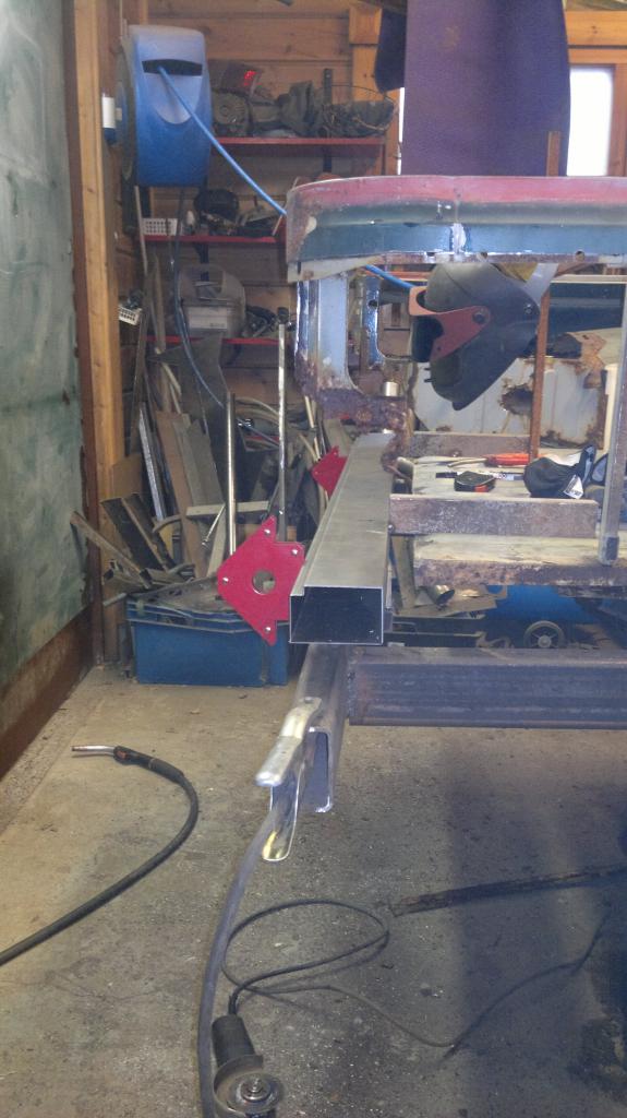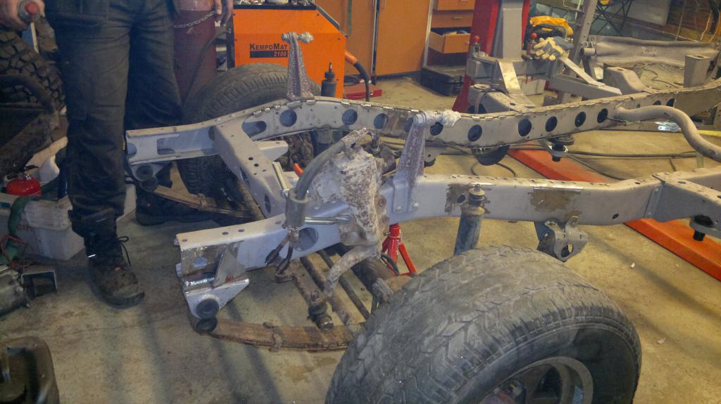Su meni tehokkaasti purkaessa 12-ht:tä esiin varaosa kasa autosta. http://forums.offipalsta.com/picture...ctureid=139866 Illasta akselin kiinnikkeiden levitystä, sinpukka sinne päin hollilleen näin: http://forums.offipalsta.com/picture...ctureid=139867 Ja tänään ehdin töiden jälkeen rautakauppaan hakemaan palkkia takarunkoa varten. Otin nyt varuiksi 5mm seinämällä 90x50 rhs, jos tästä tulee joku vetoauto niin saattaa koukku pysyä paremmin kiinni ja painoahan toi lisää varmaan kun 10kg. Vanha takaosa poikki,pientä mittailua ja siitähän syntyi kelpo korjauspala. http://forums.offipalsta.com/picture...ctureid=139865 http://forums.offipalsta.com/picture...ctureid=139868 Entäs mahtuuko näihin berttoihin mihin sovitetaan kutosmoottori plus 5-vaihdelaatikko se oma runkopalkkien välissä oleva oma tankki? Vaiko hj:n tankki sovittaen takarungon väliin? Se olis seuraavaksi takajousien kiinnikkeiden asemointi, akselit kiinni niin tän voi tuupata pihan perälle odotteleen parempia aikoja :) |