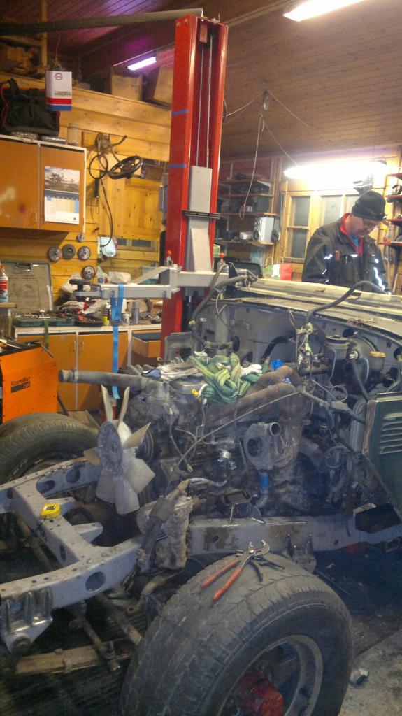 http://forums.offipalsta.com/picture...ctureid=106874 http://forums.offipalsta.com/picture...ctureid=106876 http://forums.offipalsta.com/picture...ctureid=106877 http://forums.offipalsta.com/picture...ctureid=106875 Itse autohan palstalaisilla seikkaillut enenpi ja vähempi ja on osalle siis tuttu. Mulle tai siis meille tää tuli porista jv73:lta jossa olin sitä muutaman kerran haaveillut. Kun sattui vielä niin sopivasti että appi ukko innostui myös vanhoista Toyota maastoautoista haettiin bertta kotiin. Eli tämä on mun ja appi ukon yhteis projekti. Bertta on siis puhdas rakennus sarja, on ruostetta,ei moottoria eikä vaihdelaatikkoa, paperit toki tuli mukaan ja vielä mukavat 2+6 henk. paku paperit. Suunnitelmissa on tehdä tästä sellainen sanotaanko vaikka maltillisempi offroad laite kun toi mun porttoHj. Joku reissu auto on siis tavoite ja vielä semmonen että emännän vois ottaa mukaan vaikka venäjälle. Tekniikkakin on ollut odottomassa jo pari vuotta, siis Hj-60 vm.86 http://forums.offipalsta.com/picture...ctureid=118977 http://forums.offipalsta.com/picture...ctureid=118978 Moottoriksi tulee huippu maamoottori 2H jonka perään 4-vaihteinenlaatikko, ajettu 350tkm. Turboa mietitään myöhemmin. Akselit vaihtuu myös hj:n akseleiksi, varastossa yks lukkoperä, se ehkä eteen. Suunnitelmissa myös tehdä soa alustaan mutta mutta sitä pitää miettiä. Ohjaus laitteet tulee myös hj:sta, simpukka,ratti akseli yms. sekä sähköt osittain. Eilen illalla projekti sai alkusysäyksen vihdoin ja viimein kun kattelin porttoHj:ta mutta sen roplaaminen ei kiinnostanu joten otin pulttipyssyn ja purin irti kaikki mitkä pulteilla oli kiinni. Sitten talliin ihmettelemään. http://forums.offipalsta.com/picture...ctureid=118971 http://forums.offipalsta.com/picture...ctureid=118970 http://forums.offipalsta.com/picture...ctureid=118972 http://forums.offipalsta.com/picture...ctureid=118973 http://forums.offipalsta.com/picture...ctureid=118974 http://forums.offipalsta.com/picture...ctureid=118975 Ruoste on aika lailla iskenyt tähän yksilöön, mutta ehkä se siitä kun tästä ei tule mikään pussihousu miesten auto, siihen on varmasti olemassa parempia aihioita. Etenemis vauhtia tai valmistumis tavotteita ei oikein ole,joku ajatus oli että 2014 liikkuis mutta saa nähdä. Porttohj vei kuulemma heiman liikaa aikaa pois taloremontista nii täytyy keskittyä siihen nyt vähän enemmän joten sekin rajoittaa tämän edistymistä. Jäi varmaan viellä jotai asioita kertomatta projektista mutta laitetaan lisää kun homma etenee |