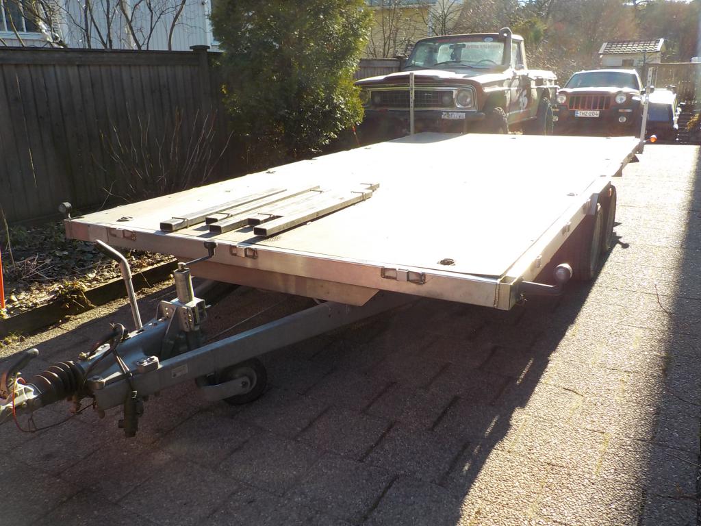 Vielä tarvii vahvistaa rakennustelineiden paria kävelysiltaa ajosilloiksi ja etupalkin alareunaan porata muutama 20mm reikä kuormaliinojen kiinityspisteikksi. Kitalukkoa tarvii vielä hieman muokata jotta pystyy kärryn lukitsemaan myös autossa kiinni ollessaan. Ai niin, yksi vanne pitää myös hakata suoremmaksi. Ihme että pitää ilmaa nyt? t. Ismo Ämmä |