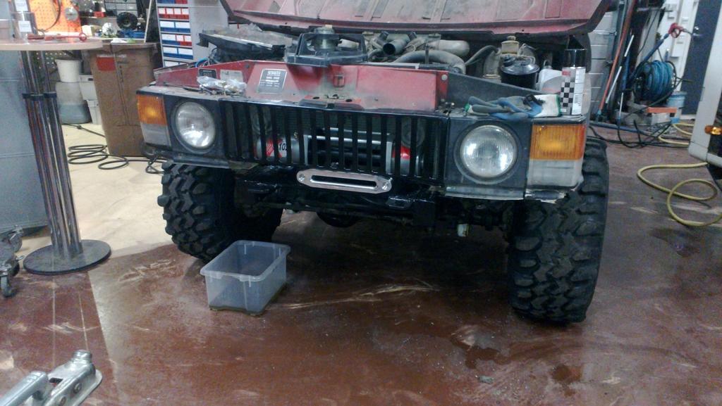 Auto siis vuoden 1973 Range Rover. Auto on kulkeutunut suvussa perintökaluna sen jälkeen kun se on uutena ostettu. Koneena originaali tuplakaasari 3.5 V8, ajettu alle 200tkm. Auto on ollut oikeastaan lähes ilman käyttöä 80-90-luvun taitteen jälkeen, mutta on ollut suurinpiirtein aina kuitenkin leimassa ja sillointällöin ajossa. Useemmat mätäkorjaukset on koriin tehty vuosien varrella, viimeisin muistaakseni 2000-luvun alussa. Taas sais tehdä niitä hommia.. Viime kesään asti Rangea on pidetty All-terrain-linjalla eli ei juuri offattu, vedetty lähinnä kärryä yms. Noh, sitten heräs kiinnostus päästä maastossa vähän paremmin.. Ensin ostettiin 31" Mud-Terrainit ja todettiin, että täysin vakio range menee metsässä yllättävän hyvin. http://forums.offipalsta.com/picture...ctureid=124450 Noh, sitten kävi näin http://forums.offipalsta.com/picture...ctureid=124455 ESABista virrat täysille ja kovaa ajoa. Noh, katsastuksestahan ESABlocker ei mene läpi, joten seuraavana laiteltiin tällästä: http://forums.offipalsta.com/picture...ctureid=124451 Siitäpä se ajatus sitten lähtikin. Oli pakko metsästää myös eteen lukko. Ja sellainen löyty sitten anssi80:n rangen entisistä akseleista, samoista akseleista löyty myös 4.7 välitys.. :D Sitten jumpattiin ja laitettiin samalla 2" korotuspalikat ympäri autoa sekä uudet puslat joka puolelle. Ahonsetä kehitteli hyvän yhdistelmän puslia (jossa sekasin eri vahvusta uretaanipuslaa ja kumipuslaa). Samalla myös heitettiin vähän uutta väriä auton päälle. 80-luvun lopussa tehdystä candyväristä ei ollut enää paljon jälellä joten nyt sai jäänmurtajamaali kelvata. :D http://forums.offipalsta.com/picture...ctureid=124449 http://forums.offipalsta.com/picture...ctureid=124452 Sitten käytiin mutka Raajärvellä paistamassa makkaraa. No eihän se auto tietenkään parane jossei sitä välillä riko. Kytkin pohjassa pakki päällä mäkeä alas ja yhtäkkiä olikin veto päällä. Siinä sitä sai sitten ihmetellä asetelmaa irrotellessa että ompa menny paksuja vaahteranlehtiä asetelman ja levyn väliin :eek: http://forums.offipalsta.com/picture...ctureid=124454 Ja taas soiteltiin Turkuun.. Seuraavaksi todettiin että lisää joustoja kaivataan. Sitä saatto edesauttaa myös takaiskarin alapultin kiinniruostuminen, jonka seurauksesta sitä avattaeussa se meni poikki. Paddockin pojilta pitempää iskaria ja uutta korkeempaa ja vähän vahvempaa jousta. Eteen ei vielä laitettu mitään, mutta taakse laitettiin +2" & +100kg jouset ja +4" iskarit. Bogella heitettiin vesieläintä, ketään siellä ei ollutkaan enää kotona.. Vielä kuva vakiojoustoista 2" korotuspaloilla. http://forums.offipalsta.com/picture...ctureid=124453 Oli aika jännä huomata, että tuo 2" korottava jousi on saman mittanen ku orkkisjousi, ellei orkkis jopa 5mm pidempi :rolleyes: http://forums.offipalsta.com/picture...ctureid=124457 Jaha ja sitten käytiin lapioimassa autoa lumesta useampi kerta. Todettiin, että 31" rengas on liika piän. Aluksi haaveilin 35*14.5R15 bokkereista, vaan sitten alko arveluttaan tuo 10 spline vetarin kesto. Tilalle löyty voorumilta sopivasti käytetyt Super Swamper LTB:t 33*13.5R15. Ja beadlockit maalattiin valkosiksi. http://forums.offipalsta.com/picture...ctureid=124456 Nyt alko jo tuntumaan, että autolla pääsee lumessakin. Eteneminen muuttu aivan toiseen luokkaan. Nyt ois sitten vinssitkin tilattu. Vinsseiksi valikoitui todella pitkän pohdinnan ja taikinoimisen jälkeen vinssikaupasta Xdyna X10PB eteen ja Xdyna X12 taakse. Nyt odotellaan sitten niitä ja metallikaupassakin on jo vierailtu. Mukaan lähti 8mm lootua vinssipetiä varten, 3mm levyä pohjaan ja helmapalkit. |