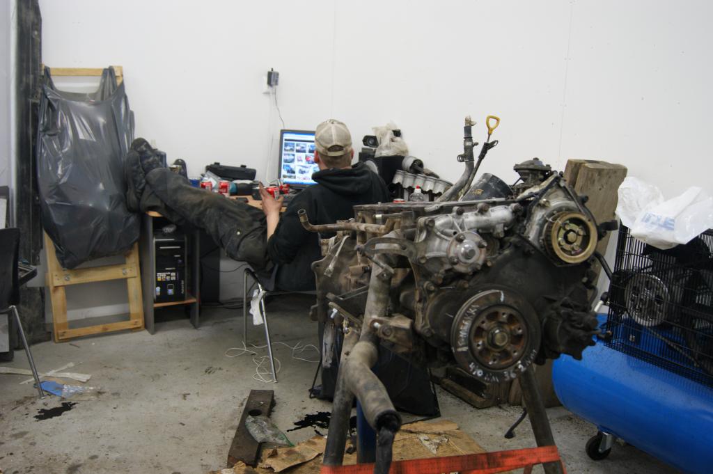 Liite 35436 Onni onnettomuudessa että hajos tyhjäkäynnillä ja kaikki moottorinosat pysyi koneen sisällä. Eipä siinä muutaku yöllä soittelemaan millä saataisiin auto jonnekkin purettavaksi ja oli pakko turvautua eks morsiamen 200D mersuun :D Oli siinä hupia nuorisolla ku vanhalla mersulla vedetään tuollaasta kaappia. :D Ittiä ei juurikaan naurattanu siinä vaiheessa. :( Onneksi Sain nopeesti saman illan aikana tallipaikan (bemarikuskilta?????? :confused:) Liite 35437 No eipä siinä auttanu sitten kuin alata tekemään elämäni ensimmäistä moottoriremonttia. Toki oon lapsesta asti tiennyt millasia osia moottori sisältää ja miten moottori toimii että tietämys ei ollut ihan nollaluokkaa. Ajateltiin purkaa kampiakseli käteen alakautta autoonpäin, helppo homma nopiaa tehty :D Tässä vaiheessa hdjn koneen joskus purkaneet huutavat eiiiiiii :D :D No minähän en tienny ajootuskotelon taustalevyn kohdistustapista mitään ja alettiin autoonpäin purkamaan moottoria. Vaihdelaatikon irroitus kesti n 5tuntia, pulttien irroitukseen meni puoli tuntia, startin irroittamiseen pari ja kovimman vastustuksen aiheutti laatikolle menevä sähköliitin :D Kun kammen laakeripukin kaikki ruuvit olivat irti, koitin varovasti kangottaa sitä auki.. samassa huomasin että etupäähän ei tuu rakoa nätisti yrittämällä. piti sitte purkia jakoremmihilppeet ja se perkeleen kellopeli jonka taustalevyssä oli kohdistustappi laakeripukkiin....jeppjepp Tässä vaiheessa oli mennyt noin viikko remontin parissa, aika meni pääasiassa tupakin polttamiseen. No saatiimpa sitte kampiakseli käteen ja näytti vielä ihan pelastettavis olevalta, kiertokanki taaskaan ei. Tässä vaiheessa kiitin kauniisti mukana olleita avusta että nyt ollaan rempan puolivälissä ja mä käyn auton alla äkkiä vetämäs ne männät käteen. Siinä vaiheessa vasta huomasin että männät ei tuu kuin yläkautta pois, meinas mennä kyllä siinä vaihees totaalisesti hermot ja projekti seiso pari päivää. Päätin nostaa koko koneen sitte lattialle kun sen joutuu kerran pärvöttämään aiva pärehiksi. Liite 35438 Otin virmalta trukin ja viputaljan lainaan Liite 35439 Liite 35441 Hitsailin romumetallin pätkistä äärimmäisessä väsymyksessä ja v*tutuksessa aamuyöllä todella rofessionaalisen moottoripukin Liite 35440 Kansi irrotettuna. Liite 35442 Männät oli saanu karstaa ja yks männänrengas jumissa ja katkes kun yritin pois. Sitte tein pienen soodakäsittelyn ja männistä tuli kuin uudet =) Ajattelin millneroffroourista tilata moottorin tiivistesarjan, jostai vai pitääs huokialla löytää männänrenkaat. Kanki on tulossa postissa torniosta ja akseli kauhajoella hiottavana =) |