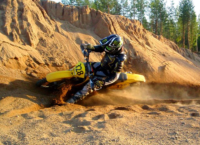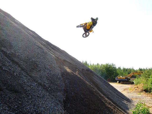 Kakarana tuli aloteltua tunturi thaigerilla, sit 12v hommasin susuki dr250, oppi pysyyn pystyssä ku ei sitä jaksanu ikkää nostaa pystyyn :D Sitte 14v honda cr 125 doman teharilla, 15vuotiaana sitte eka punakilpinen eenduropyörä, Husqvarna cr125 öhläreillä ja raskaammalla 100w makneetolla nii löyty kivasti vääntöjä. Hussella tuli ekat kisat kierrettyä. No sehän jäi laiskaksi, ja kun siinä 17v nurkilla oli vielä ruista ranteessa vähän eri malliin, nii päätin sitte rakennella punakilpienskan suzuki rm250sestä. iskarit purin ja simailin mielen mukaiseksi, moottori koki saman kohtalon, purkuun ja kovalla säätämisellä saatiin häivytettyä tehopiikki tosi loivaksi. alavääntöä lisäsin kans. Tämä oli mahtava laite, tuli harrastettua vähä tuota ramppihyppelyäki... Paljo tuli ajeltua myös velipoijan procircuit kromikawalla(125), isän 400 exc kotarilla, ja äireen yamaha yz-f 250:sellä :) Keskityin kisailussa sijoituksen sijasta yleisön viihdyttämiseen, ja monesti jäin juttelemaankin varikolle kesken skabailun Muutamna kuvatus matkan varrelta.... Huksvarnalla jossai sarjaenduroskabassa... Liite 46425 Kotarillla jääratailemassa :) Liite 46426 Oli se vaa hienoo hommaa, kelistä riippumatta Liite 46427 Kaverin kanssa tehtii hyppyramppi ja siitä tuli hussellaki pompittua... Hyppyri oli stepup mallia, sai kivasti ilmaa, varmaan joku 8m :) vertailukohtana voio pitää kuivaajaa ja lento kesti useita sekuntteja Liite 46428 Mun viimeinen kisa, Himos cross country (2009?) Liite 46429 Rm valmiina Liite 46430 Tämä kuva tuo hyvät muistot mieleen. Velipoijan kans katottii enskavideoita ja se kysy sit että miks kukaa ei linkuta ilmas enskalla? No mä sanoin että mennää me kokeileen ja sit lähettii ottaa kuva :) vähä kyllä jännitti ku ei ollu ees kunnon hyppyriä, soramiontulla vaa hietakasaan lapiolla vähä uraa ja siittä--> Liite 46431 Enskarataa tekemäs ja paikkoja testailees. Enkä ees kaatunu, vähä ku otti kunnolla vauhtia nii hyppäämällä pääsi päälle :) Liite 46432 Liite 46433 Tämä kuva on himos cross country kilpailuista vuodelta 2008. ympyröin itteni, tuos oli vähä atrenalliinia ku väkiä tuli peräs niiku pipoa. Videolla kotijoukot kannustaa äänihuulet soikeina :D Liite 46434 Sitten tuli vakkarityöpaikka, vakkari parisuhe, kaverin paha loukkaantuminen ja pyörä sai lähteä :( tilalle tuli sitte hj. Semmonen tarina, sori jos tuli väärään paikkaan. -Henkka |