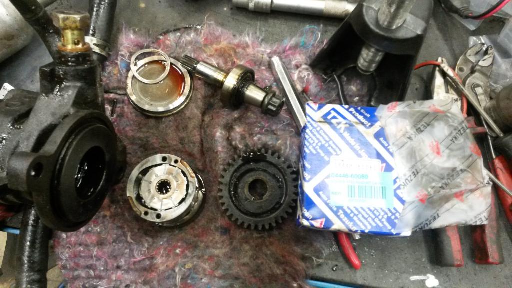 Auto päättipuolestani että se ehjääminen alkoi nyt. Lähtiessäni kotoa liikkeelle kun tulin ensimmäiseen risteykseen moottorijarrutuksella kuului vaimeaa jurinaa. Tullessani seuraavaan risteykseen oli jurina jo pahan kuuloinen. Kolmas risteys oli jo niin paha että alkoi hirvittää ja en uskaltanut ajaa eteenpäin ennekuin konttasin auton alla mutkan... Etuperän pinjonin laakeri kajahti ja aiheutti minulle etuperä remontin... http://forums.offipalsta.com/picture...ctureid=175257 Napojen pronssi holkit saavat neulalaakeri päivityksen ja kääntöpään laakerit ovat saanu selkään todella pahasti ja käännössä tunttuu kohta mikä oikein nykäsee kääntäessä... välitykset ovat suht ehjät mutta pieniä jälkiä hampaissa on. Tasauspyörästön runkoon on kyllä jäänyt lähtemätön vaikutus pinjonin hampaista. http://forums.offipalsta.com/picture...ctureid=175253 Pinionille uudet laakeri mutta poskilaakerit saa jäädä. Kaikki paikat pitää vain putsata huolella kun tuota laakerin nöyhtää tuntuu olevan jokapaikassa... http://forums.offipalsta.com/picture...ctureid=175254 Pinjoni akselilta oli hajonnut öljyn heittolevy eli swingeri vai mikäse oli. Toimitus aika oli reilu pariviikkoa ja nyt näyttää että saan auton nippuun kuun lopussa työkiireiden takia... |