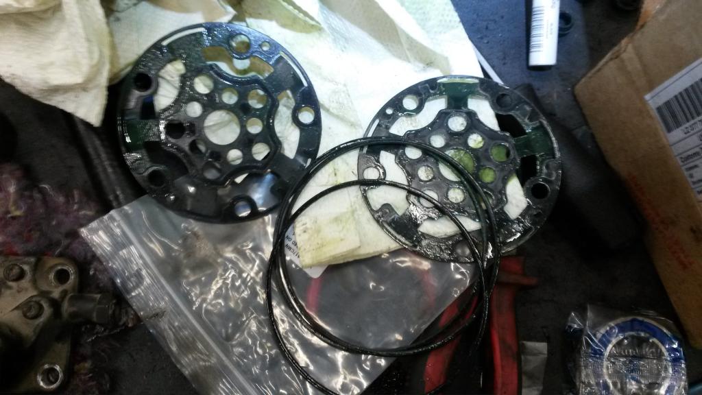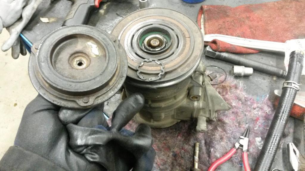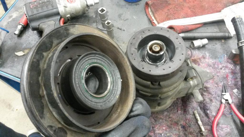 Suurinpiirtein tiesin mitä se pitää sisällään mutta magneetikytkimen purkaminenkin oli jo haaste lukkorenkaineen... http://forums.offipalsta.com/picture...ctureid=168143 Tuo piparkakun muotoinen lukkorengas oli jännä, se oli todella notka mutta silti se oli aika jämäkästi paikallaan. http://forums.offipalsta.com/picture...ctureid=168144 Ja jällen kerran vastassa oli lukkorengas. Tässäkuvassa jäljelle jäi enään magneetti kela, sen irroituksen jälkeen pääsin käsiksi itse kompressorin rungon pultteihin. Siittä varovasti purin kompuran joka koostui neljästä osasta, kansi ja peräseinä sisälti vaidettavat levyt ja joka runkokappaleenväliin tuli o-rengas. http://forums.offipalsta.com/picture...ctureid=168146 Tässä vanhat levyt ja tiivisteet ennen roskiin heittoa! Oikealla alhaala näkyy magneetti kytkimelle uusi laakeri. http://forums.offipalsta.com/picture...ctureid=168145 Kansi sai uuden stefan ja olipa siinä vielä sellainen huopatiivistekkin. Sitten tähän hommaan olisi ollut myynnissä huolto työkalu sarja jonka tärkein sisältö olisi ollut työkalu jolla saadaam akselin pää ujutettua stefasta läpi rikkomattasitä... en tietenkään ajatellut tarvitsevani sitä ja kotvasen sai kehitellä ennen kuin sopeva työkalu löytyi. Tussin korkki osoittautui käteväksi ohjuriksi. http://forums.offipalsta.com/picture...ctureid=168147 Sitten sen laturin kohtaloksi osoittautui iso remontti eli kaikki oli vähän rempallan. hiilet oli loppu ja laakerit meni vaihtoon, oli tosi hyvä että tuli tuokin laitettua kuntoon. Olishan se harmittanu kohta ruveta kaivamaan sitä taas sieltä ahtaasta kolosta. http://forums.offipalsta.com/picture...ctureid=168148 Tehostajan lauhduttajan puhalsin läpi tuommoisilla hydrauliikka letkujen puhdistus vaahtomuoveilla jotka kerää tosihyvin ravat matkaan ja seuraavassa kuvassa on, miltä se näyttää kun se tulee sieltä ulos. Tosin toinen niistä lensi maatakiertävälle radalle eikä koskaan löytynyt.... http://forums.offipalsta.com/picture...ctureid=168150 Saas nähdä kauvanko pitää ajan kulua että koneiden huolto alkaa olla sillä tasolla että hydrauli letkutkin puhallettaisiin puhtaiksi niitä myyvissä liikkeissä. On muuten uskomaton määrä mitä sieltä tulee epäpuhtauksia. http://forums.offipalsta.com/picture...ctureid=168149 Tulimuuten taas kerran tutkittua mitä knokki sensori on syönyt, liitintä irroittaessa jäi kansi tuosta anturasta kouraan ja sittenpä se irtos jo johtokin... totesin että heitän kuikkaa ja tilaan toyotan alkuperäisen. http://forums.offipalsta.com/picture...ctureid=168151 Sitten vaihtelin virranjakajan kannen ja sen lähetys saarnaajan sieltä sisältä, vanha kun oli hapettunut ja kun puhdistin sitä niin sieltä lohkesi isoja paloja irti... Huomenna jos shoppailis vielä muutamia o-rengas tiivisteitä siihen ilmastointi järjestelmään kun sen kuivaimenkinnmeinasin vaihtaa. Sitten öljyn suodatin ja öljyä. Niin joo ja nestettä pitäs ostaa mutta kun en tiedä vielä kumpaa väriä siellä nyt pitää olla, saa kommentoida jos on ideoita... |