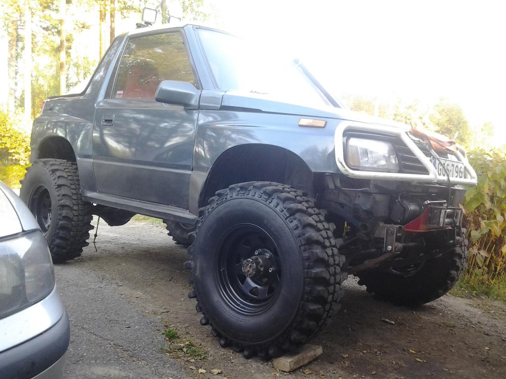 Liite 52838tuossapa vielä peräkin suurinpiirtein paikoillaan.. autosta tuli ihan maasturin korkuinen.