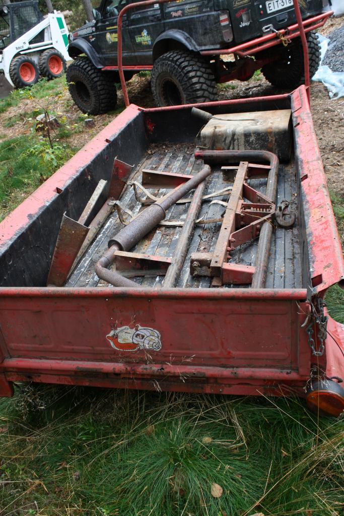 Ensin lähti lavalta varaosat talteen ja sitten bobbarilla läksi itse lava: Liite 52563Liite 52564Liite 52565Liite 52566Liite 52567Liite 52568Liite 52569Liite 52570 Seuraavaks iso rälläkkä ja puukkosaha käteen ja ylimääräiset rungosta, 'alleajosuojat' sivuilta ja alkuperäinen tankki mäkeen: Liite 52571Liite 52572Liite 52573 Jotain pientä jäi runkoon vielä siistimistä mutta isoimmat lähti nyt. Takaylitys on nyt minimoitu vankkurijousille, takimmaisin poikkipalkki pitää hitsata takas kunhan runko on ensin puhallettu puhtaaksi, mutta muuten lisää pituutta ei pitäs tulla. Oli tankissa jotain hieman epämääräistä ruskeaa 'bensaa' muutama litra, voi olla että ei edes palas tuo 'bensa' vaikka yrittäs :D Siinä sitä nyt on romua oottelemassa kierrätystä, tuo koukku nytkineen pitänee napsia talteen, muut taitaa mennä romunkeräykseen: Liite 52574Liite 52575 Rungosta löytyi jonkinlainen ruotsalainen moottorinlämmitinkin, pitänee kattoa toimiiko :) Liite 52576 Jos sitä seuraavan kerran kun on aikaa riisuis tuota konttoria pikku hiljaa, tavote olis saada kori, runko ja tekniikka vielä erilleen tälle syksylle että rungon voi puhaltaa ja maalata talvea silmällä pitäen. Samoten saa korin talliin paikkailua ja muutoksia varten. Tuli tuossa myös eilen tunkattua taka-akseli ilmaan ja pyöriteltyä renkaita, renkaat pyörii samaan suuntaan eli tuossa takaperässä vois ilmeisesti olla alkuperäinen kitka jopa paikoillaan tai sitten kemppi :D Tuo selvinnee kunhan joku ilta avaan tuon perän kopan... |
