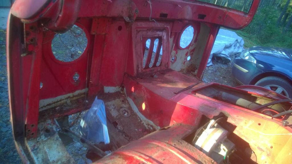 Runko olis tuupattu ulos tallista ja se menee ens viikolla hiekkakylpyyn ja maalaukseen. Ei näin äkkiseltään näy kuin pintaruostetta rungossa