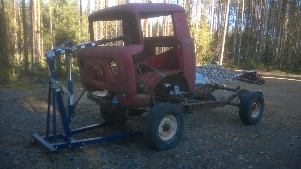 Eihän se mikään mahoton peto maastossa olis mutta omanlaisensa kuitenkin. Pistäs rekisteriin kun korityöt tehty ja nykyinen tekniikka käyty läpi ja sitten joskus kun törmää sopiviin akseleihin ja tekniikkapakettiin päivittäs ne hieman paremmaks... Mutta katotaan nyt kuinka kauan tuon korin, jne. kuntoon laittaminen ottaa aikaa ja mitä sen homman aikana tapahtuu muuta :) Ei ihan heti pääse tuon kimppuun kun on vähän noita talohommia vielä tälle syksylle kesken, hiace pitäs hitsata ja Chedarikin taas huoltaa/kunnostaa ennen kuin tämän siirtäs talliin... |