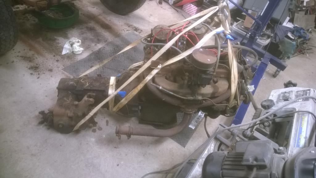 Ihmeen helposti tuo kävikin, korinkiinnikkeiden pultit poikki rälläkällä/paineilmasahalla, norsu kiinni liinalla ja eiku tunkkaamaan... CheDari avuks vinssaamaan runko pois hytän alta ja siinäpä se, ilman suurempaa rytinää ja dramatiikkaa ihme kyllä :D Liite 53015Liite 53016Liite 53017 Tuomonen mahottoman iso ja tehokkaan näköinen kone sieltä paljastu... Liite 53018Liite 53019Liite 53020Liite 53021Liite 53022 Jossain vaiheessa sitten runko talliin että saa nostaa moottorin ja laatikot talteen ja pääsee tyhjäämään loput rungosta. Päätin että tähän tulee sitten hytikkavinssit eteen ja taakse, ihan vain sen takia ettei ole moista vielä tullu toteutettua :p Eli jossain vaiheessa pitäs ruveta ettimään tietoa mitä tuota varten tarttee, minkä kokoinen pumppu, hytikkasäiliö, jne. Pumppu tulee kampiakselin päähän kun syyläri siirtyy lavan takaosaan niin koneen eteen jää tosi hyvin tilaa. |