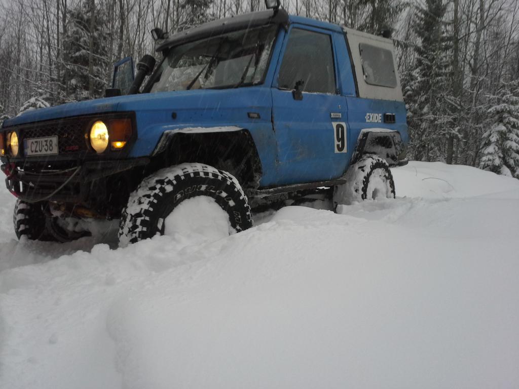 Oli muuten helpoin keli noissa maastoissa ikinä lumen määrästä ja lämpötilasta johtuen, kun auto eteni mäkiä helposti...Josta isoo kiitos myös renkaiden lainaajalle :D Team Sukusi |