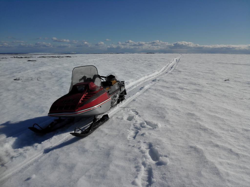 Mökkinaapuri huitas mönkkärinsä railoon jossa ei ollut tonttuja kummallakaan puolen. Jäät siirtyneet. Kuski ui ja mönksy meni melkein yli....laite pysy pystyssä ja käynnissä. Kuski pääs märkänä kaasuille ja sai laitteen lopullisesti yli. Onnex tässä vehkeessä oli nastat ja kuski oli valveutunut. Näytti karmeelta tulla perässä kun kuski ja laittet menee ympäriämpäri.... Kuski teki voltit ajoviimasuojan läpi railoon. Railo oli noin 3,5m levee. Mä kelkalla ja reellä miljoonaa railon yli toiselle puolelle pelastaan. Kaikki tapahtuu sekunneissa.....liian nopeesti...... Ja sama väli oli ajettu edellisenä iltapäivä hämärissä eikä railoa ollut...... Olkaa varovaisia......jäillä....Railoja näytti olevan selillä enemmän kuin aikaisempina vuosina...... No tästäkin selvittiin pienillä kalustovaurioilla kamppeiden vaihdolla jonka jälkeen päästiin jatkaan matkaa...... Ja laittaan verkot likoon..... Ja selillä oli kirkasta jäätä moottorisahan laipan verran noin 30cm. Ja kovimpiin vitrtapaikkoihin ei edes uskalla eikä kannata mennä. |