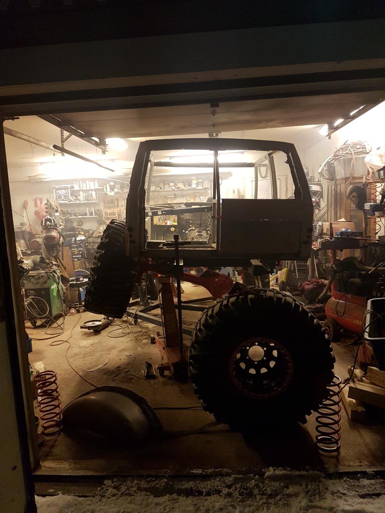 Nyt rupeaa paikoilleen pultatut osat pysymäänkin paikoillaan, tällä viikolla jos sais tuon kopan rungon päälle, jne. Lainarenkaat ja vanteet vielä alla, kisakumit pitäs tulla huhtikuussa.
