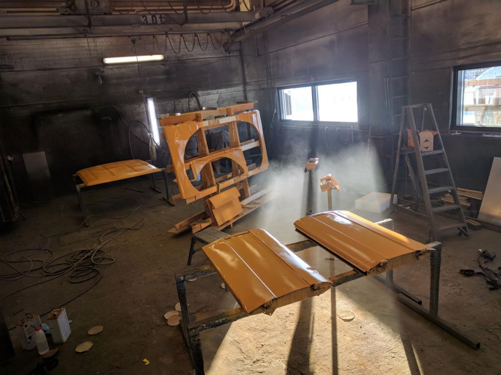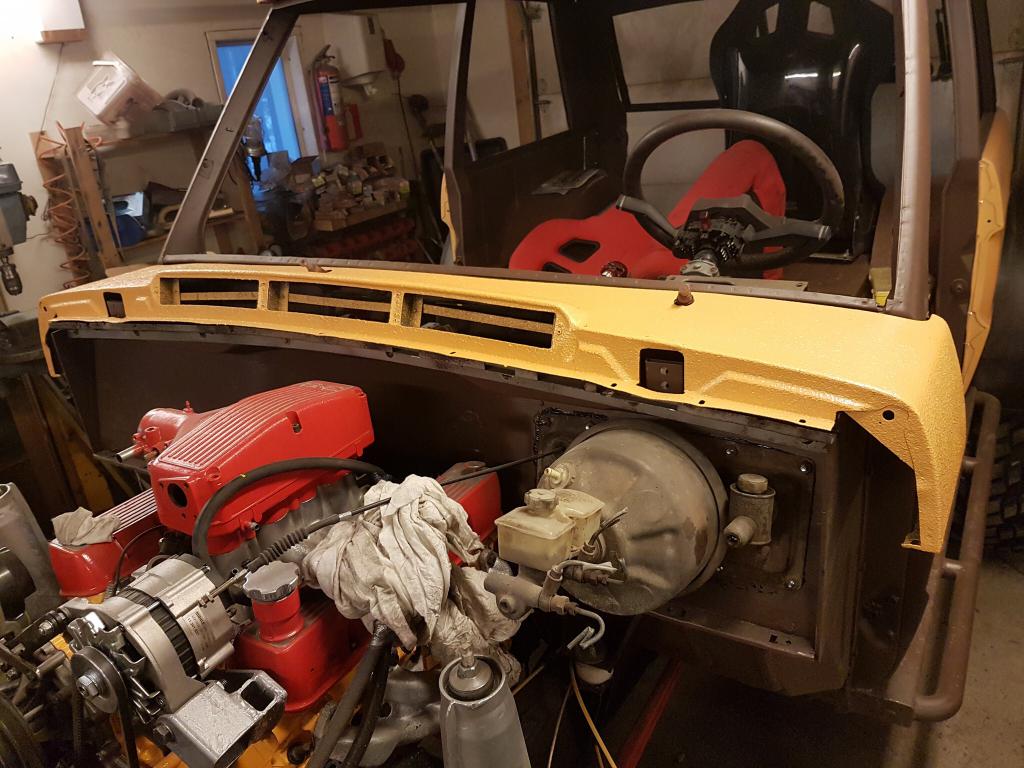 Eilen raptoroitiin konepelti, tuulilasin etupelti ja sisäkattoa hieman. Samoten etupenkkien telineet on nyt suunniteltu ja kuskinpenkin teline tehtykkin.