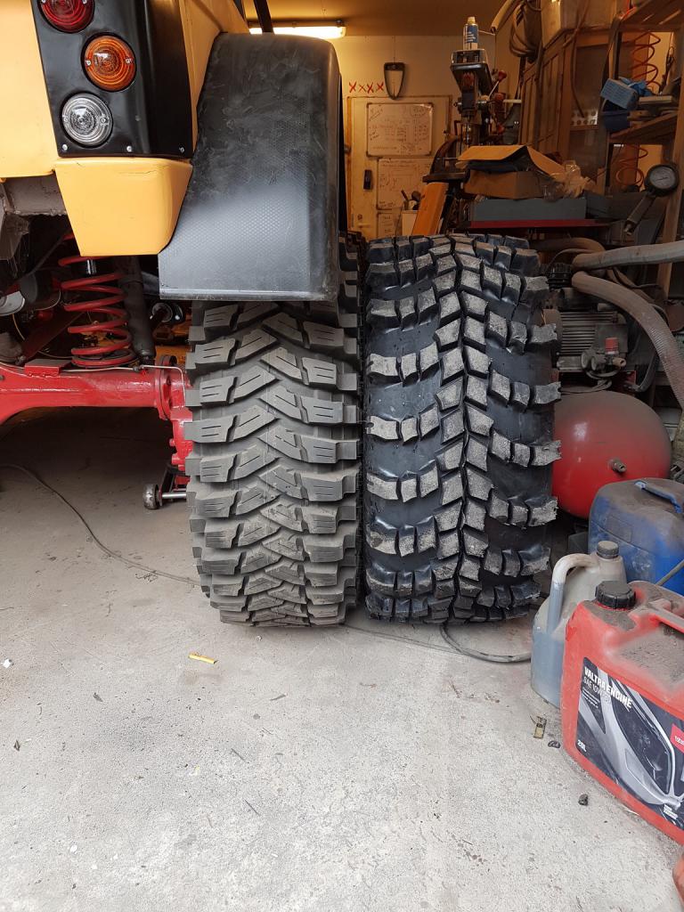 Ne toiset vanteet on enemmän plussalla, noita pitää sovittaa jossain vaiheessa ja jos ne istuu paremmin niin hitsata beadlockit ja vaihtaa niihin: Liite 85009 |