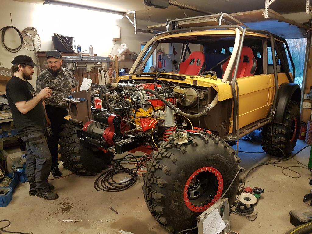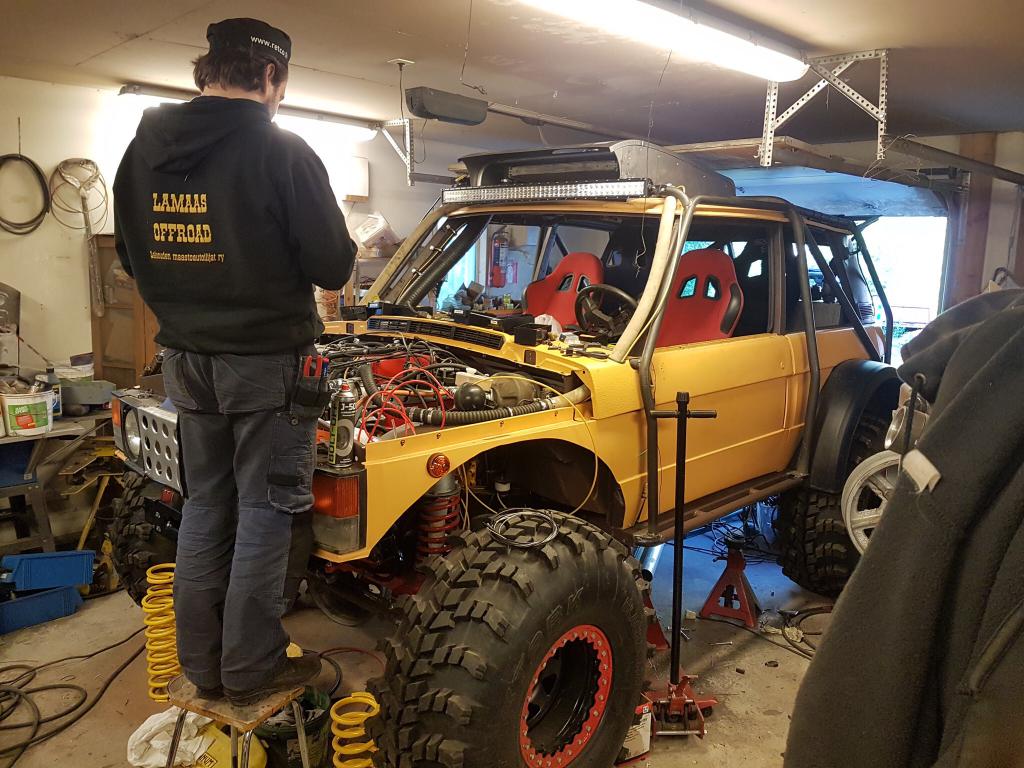 Ulkopuolelta ei puutu kuin etupuskuri, rampeille ja tunkille paikat, vetopisteet ja etuakselin panssari. Liite 86283 Välillä pientä sekamelskaa kun pajotetaan mutta etenee etenee :) Liite 86282 Tässä jo leimarenkaat alla, ajetaan isoimpia vikoja ulos ja moottorin säätöä. Liite 86284 Tekemistä riittää vielä ihan helvetisti, seuraava etappi olis yrittää saada auto leimaan ja Lapland Trophyyn viikon testiajoon, viikko aikaa pajottaa ja leimata. Sitten alkaa kisavarustelun loppuun hierominen ja ehkä vanteiden vaihto, on sen verran parempi et noissa uusissa. Oulun kisoissa sitten tositoimissa :cool: |