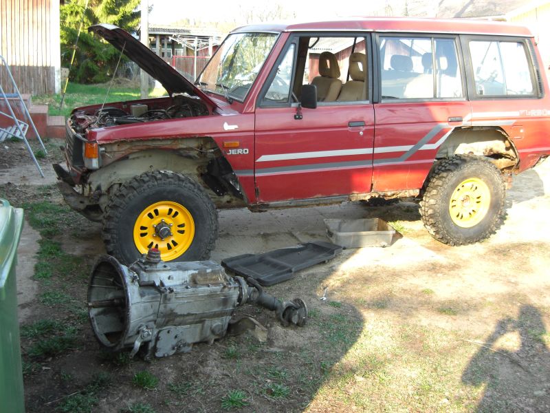 Kyseinen Pupu on -86 mallinen 2,5 TD, ja mittarissa on 480tkm. Pääsiäisen ajopäivillä isolla renkailla meni autosta apusimpukan akseli vinoon, ja etukardaanin takaristikosta ovat neulat varisseet pois. On välitankokin hiukan mutkalla, mutta se ei haittaa. Ja auton ex-omistaja ei varsinaisesti mummoillut...! Hyvin jaksoi pajero polttaa kolmea pyörää kalliolla. Edellinen omistaja on tehnyt seuraavat muutokset: