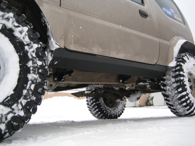 Vaihtamani jarruletku on Calminin valmistama ja tarkoitettu alunperin SJ413/Samuraihin, mutta tuntui käyvän suoraan myös Jimnyyn. Otin letkun kokeiltavaksi, joten hinnasta en vielä tiedä. Panssarit ajattelin tehdä tankin, jakolaatikon ja moottorin suojaksi. Tarkoitus olisi väsätä ne turkkilevystä. |