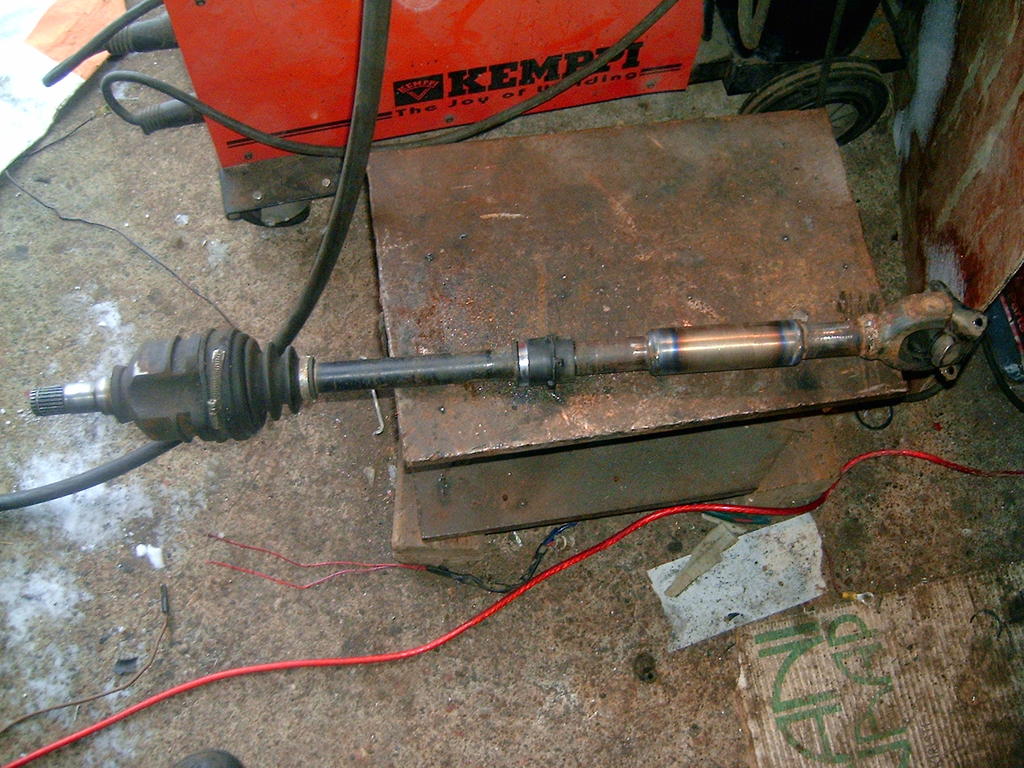 http://forums.offipalsta.com/picture...ictureid=40547 http://forums.offipalsta.com/picture...ictureid=40821 Toi revennyt ristikko on takaa joka meni jo 31 mudzilloilla rikki. Sinne pisti hjn kardaanin lyhennettynä , tosin siinäkin on vielä vaihdelaatikon päässä suikan ristikko. Etukardaanista katkesi toinen ristikko ja toisessakin päässä oli jo väljäksi mennyt. http://forums.offipalsta.com/picture...ictureid=40820 Eteen tein tuollaisen pro kardaanin 2litrasen 626 mazdan etuakselista:D Siinä on nyt kaksi liukua kun tossa alemmassa murroksessa on 4cm liikevaraa ja suikan orkkis liuku on tuossa välissä. En tie kestääkö mutta aika näyttää. |