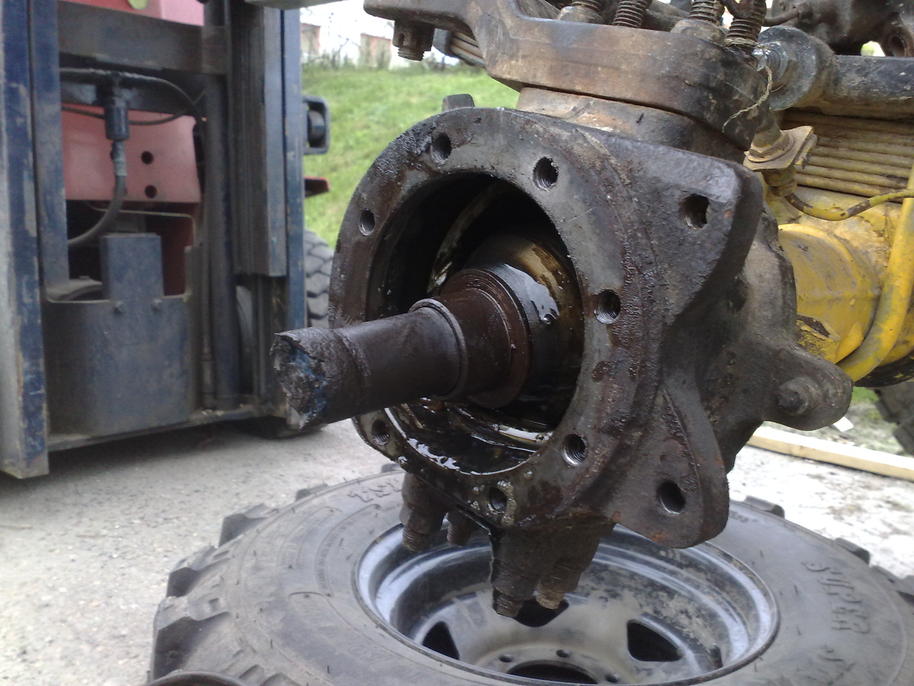 Eipä ollut kuin pinjonin kiristys mutteri löysällä.. jotain 4-5mm pitkittäisvälystä. Ei vaurioita. Ei hirveesti ole tullut uitettua akseleita vesistöissä, mutta silti oli öljyt sellasta harmaata velliä.