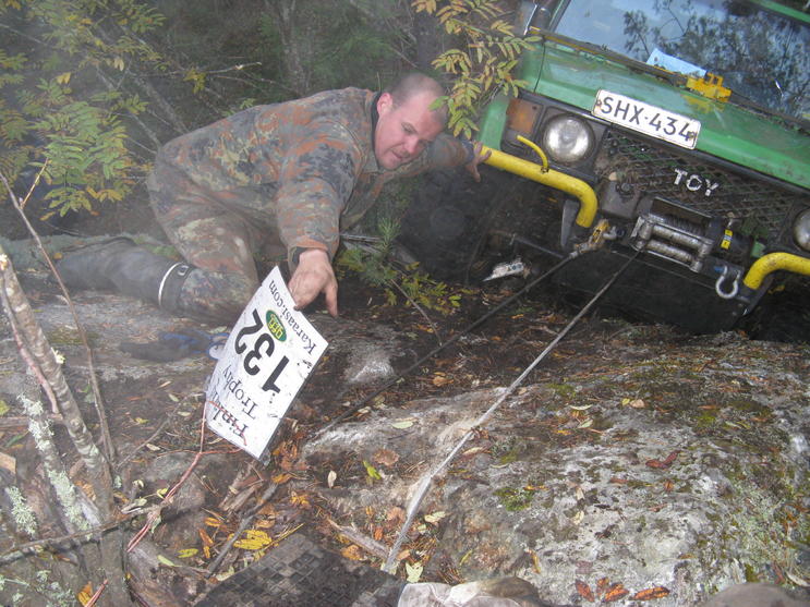 tilanne ohi tierämmä, Team Suomen soviteosalla ongelmaa, kuski olisi mutta vinssiapinaa vailla... Ypyrin ylittäjät vuokraa JT:n eli yhdeksänkymmentäluvun vinssiapinan tähän kisaan :D Ps. linnut grillattu ja juomat menossa :P |