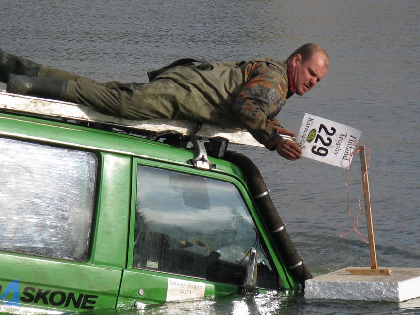 Pistäkää seuraaviin kisoihin kuvio kellunta autolla:) Moniko auto haukkas vettä tossa lutakossa?
