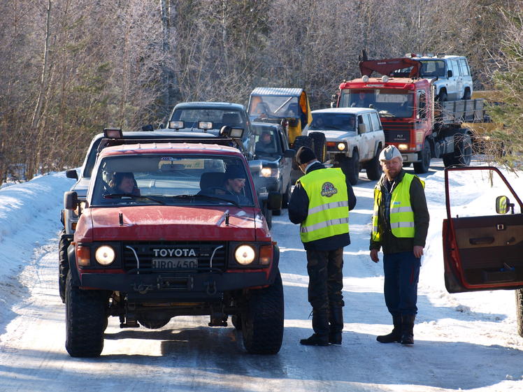 Letkojen matkassa ei oikeen viihdytty, kun oli sellasta enempi pysäköintimeininkiä. Kahden auton ja yhden kömpijän osasto oli sopivan kokoinen ja odottelua ei juuri ollut. Umpihangessa ajettiin paljon. Vahingoiksi kirjattiin hävinnyt kytkinnestesäiliön korkki. |
