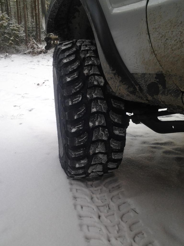 Onnistuu ihan hyvin, omani saipannut, sekä 35" MTR:ät ja mettäkumit, 37" Baja Clawit