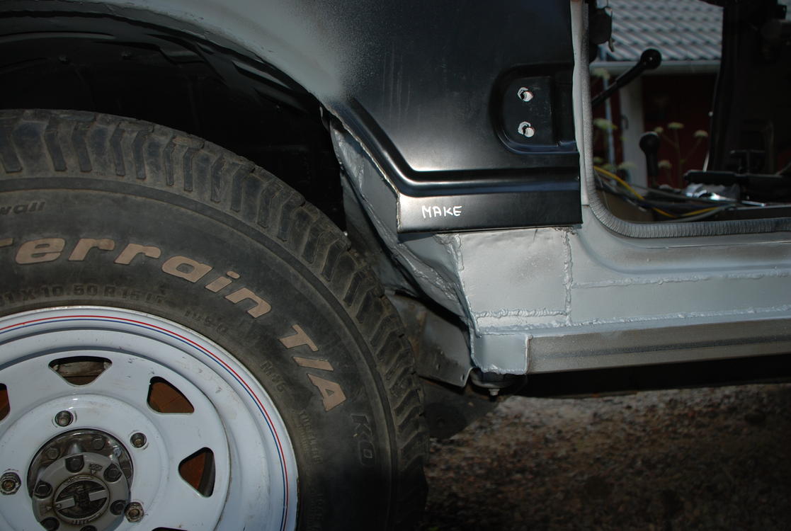 Syylari kävi jäähdytinkorjaamolla ja siihen tehtiin helvetin kallis remontti(kennon vaihto). Onneksi tuli sovitettua ennen lopullista kasausta. Perkele! päädyt juotettu väärin päin paikoilleen. Usiks meni. No takaiskuihin on totuttu. Eilen loppui kaasu kesken "rähinän". Toinen tämän päivän huomio oli, että vasen takajousi on poikki. Ollut ties kuinka kauan. No hyvin se on topparin varassa kulkenut! Koolmas takaisku oli läpeensä mädät lokasuojat. Make kerkesi jo leikellä ja valmistella niitä korjausta/avarrusta varten, mutta ei oikein löytynyt enää kovaa paikkaa mistään. Onneksi varastosta löytyi uudet 410:n tarvikelokasuojat. Niistä ruvettiin sitten muokkaamaan avarampia. Tarvikepelleissä mitat tuntuvat olevan vähän sinne päin. |