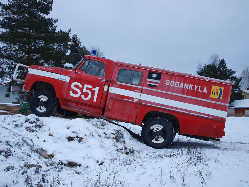 Liite 15803 Liite 15802 Liite 15801 Eli kyseessä tosiaan Sodankylän kunnan vanha paloauto, Fargo W-300 4x4 -62. Koneessa on kokoa 318cid, eli 5,21 litraa V8, ja käy pensselinpesuaineella. Erikoista autossa mm: Alkuperäiset Dana-70 SOA-akselit ykköspyörillä, alkuperäinen järeä etuvinssi, kardaanikäsijarru, ja ajettu huimat 45tkm. Auto toiminut alkuaan Sodankylän ykköshöökinä/raivausautona, sitten siirretty kakkos-autoksi, ja viimeisenä siitä tehtiin lentokenttäpaloauto palvelemaan Sodankylän lentokentän turvallisuutta. -16 asteen pakkasella lähti heti ekalla startilla käyntiin, kunhan laitettiin ensin jäähdytinnesteet syyläriin, ja uusi akku paikalleen. Tarkoituksena entistää, ja kunnostaa, mutta silti hiukan parantaa maasto-ominaisuuksia, kuten isompaa rengasta yms... Perimätieto kertoo ettää tällä pääsee pahaankin paikkaan, ja useimmiten jopa poiskin sieltä... :D Noh, saapi nyssi nähä mitä tästä tuloo... Ja ompahan sit meitin ajoissa maastokelpoinen sammutuskalustokin paikalla, jos sattuu jotakin... ;) Emmää nyssi tiijä että onko tää tämmösen topiikin arvonen jonkun mielestä, kunhan laitoin kun on sentään 4x4, ja vinssikin keulalla... |