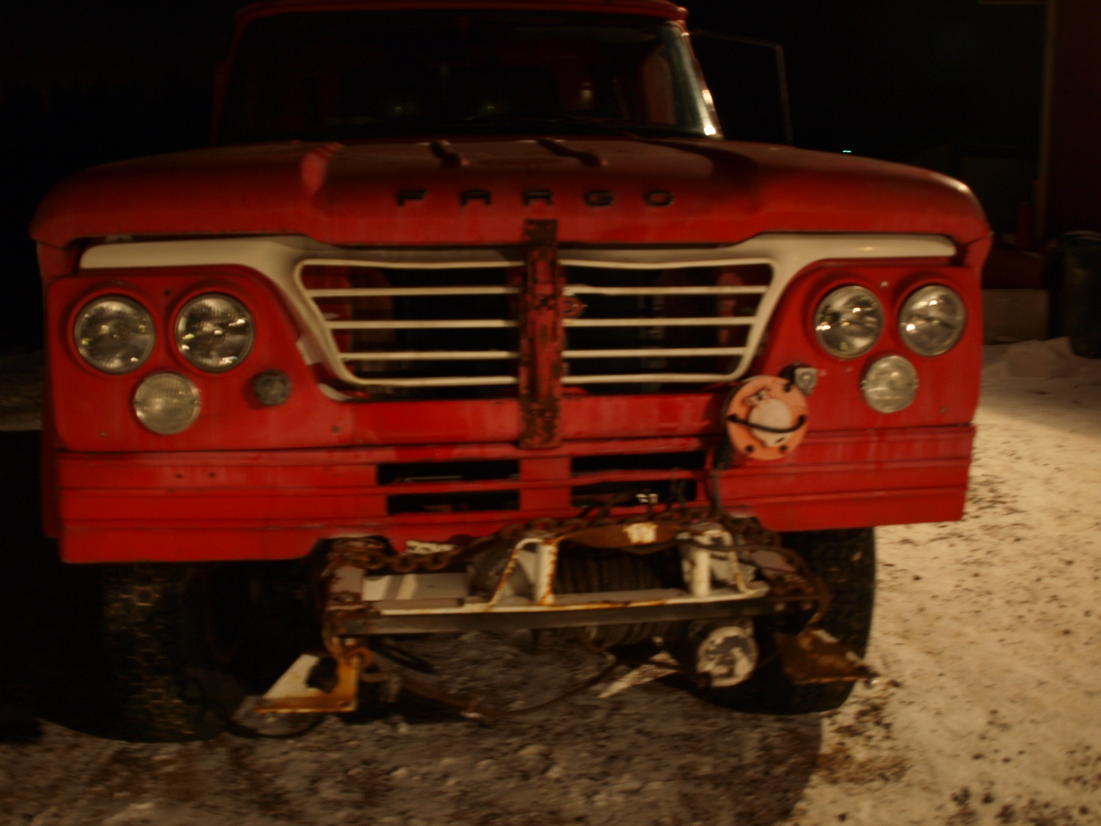 No niin, tulihan sitä viteoo :rolleyes: Se onkin korkeampi / isompi tuo fargo kuin mitä kuvista arvelin. Ja kyllä V8:n ääni vetää sutsuki-kuskin aina hiljaiseksi :D