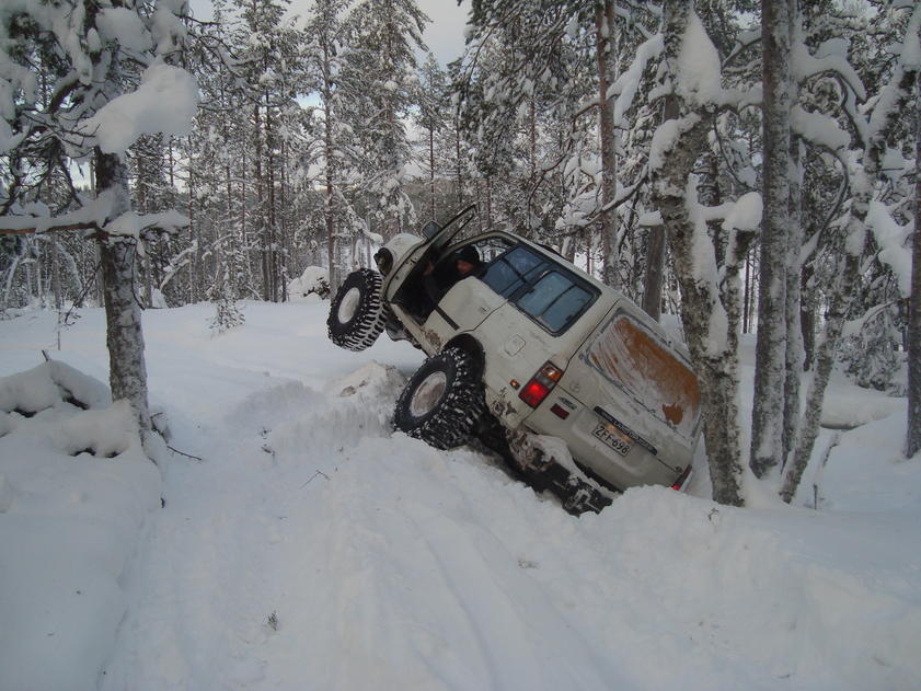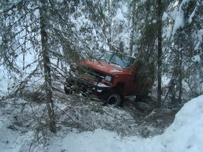 Tuo kalustoraja kyllä rajottaa kun tuskin täyttää 33" pyörillä ja korotetulla risukeulalla (mitä nyt saa inhimillisesti nostettua vääntösauvoista sun muista riipuista ja korinnostoista ) varustettu nissanin lavuri etenemisen määreitä kun matala risukeulahan tuo on edelleen ja siitä ei mihkään pääse :( No on mulla vinssit ja kilvet kahen pään jotta jos jossai makkaranpaistopaikalla pääsis pyörähtään vaikka puulta puulle meiningillä :D |