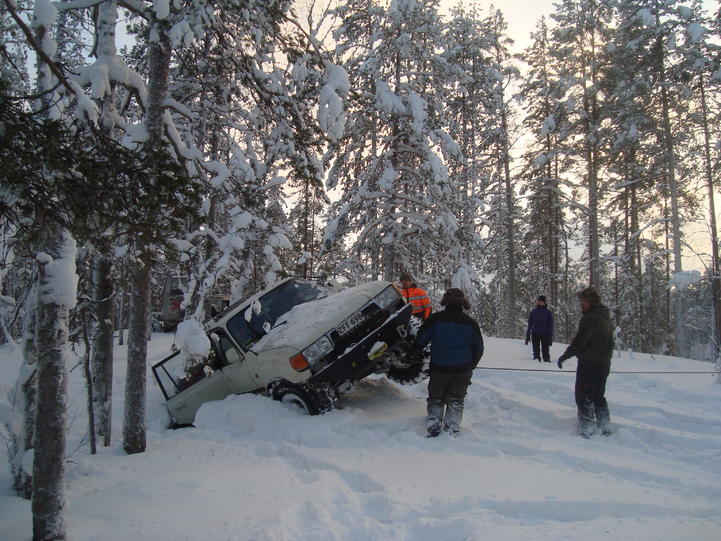 Pyhät ohi ja paluu arkeen - kohta alkas olla reittii sen verran että kehtais kysyy myös vierailijoita. Kävimme sisäpiirin kalustolla vähän kokeileen ja haasteita löyty myös hodarille missä on 37" boggerit. :) Neliveto hj 35"llakaan ei ihan ilmasiks joka paikasta tullu. Ketjut tai voima oli lauantaina päivän sana! Pari kuvaa testi EK:lta: