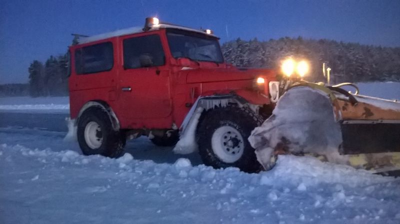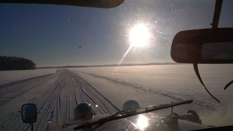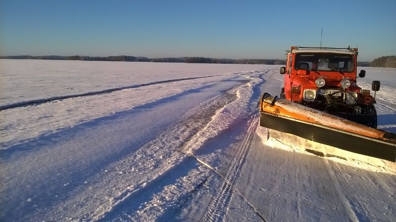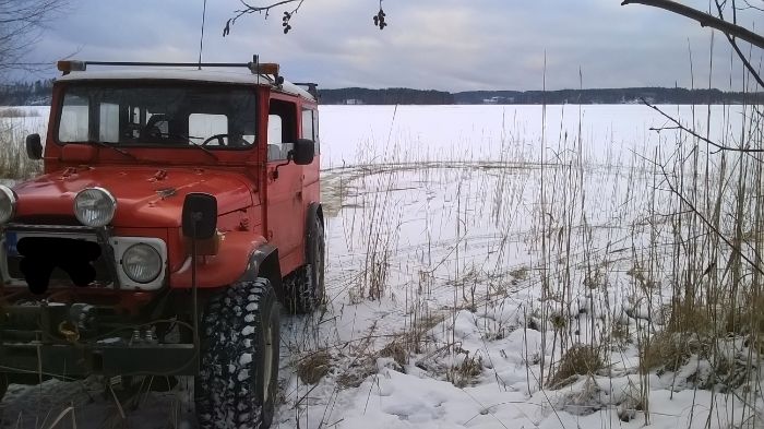 + 30 cm tuntus olevan jäitä etelä-Päijänteellä, ja ihan liikaa pitoa piikkipyörillä wanhalle 124 lle :(