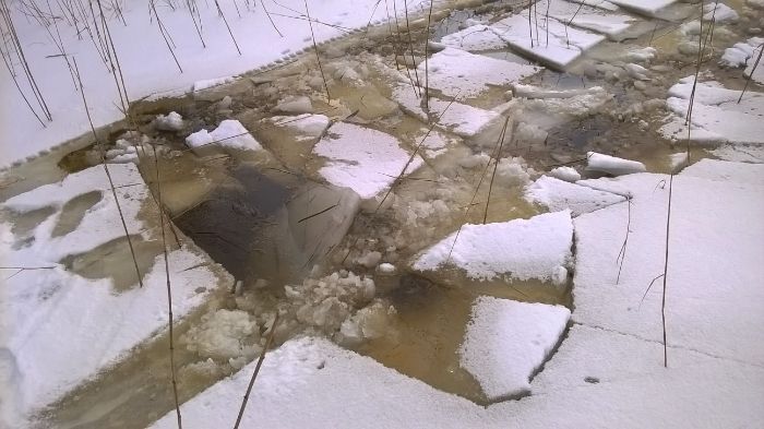 Noin 40cm jäätä oli radalla mutta oli noussut vesi jäälle...